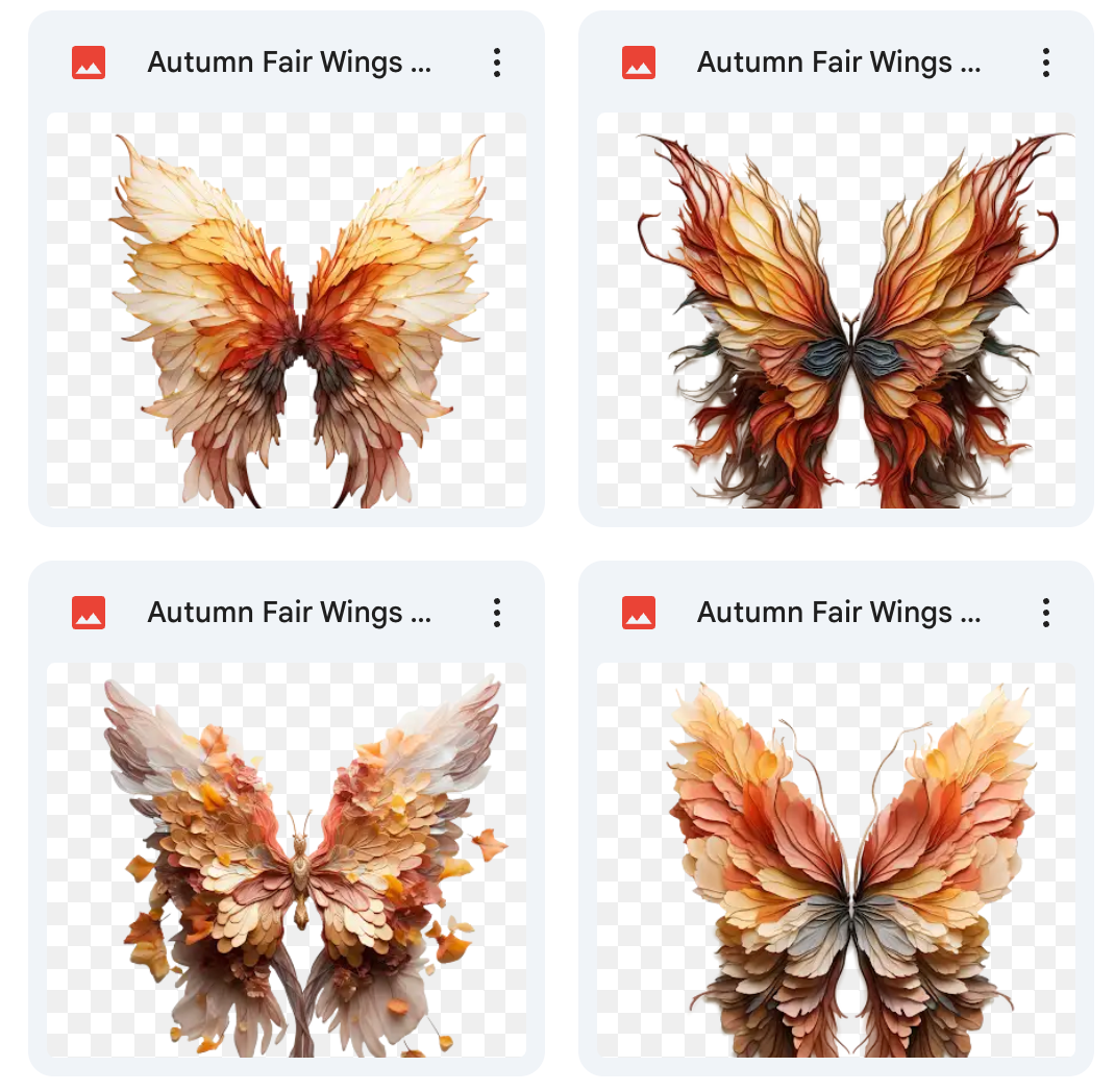 40 Autumn Inspired Fairy Wings: Delicate and detailed, these wings are designed to bring a whimsical touch to any character or design.