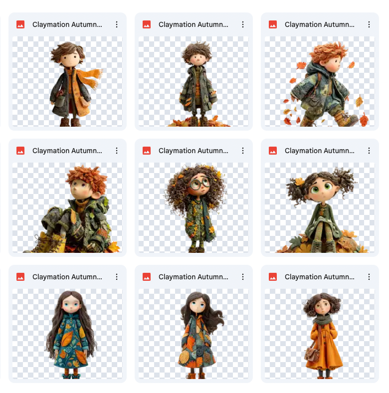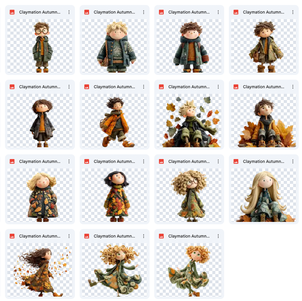 40 Claymation Kids Overlays: Adorable, handcrafted claymation kids enjoying autumn activities to add character and personality to your projects.