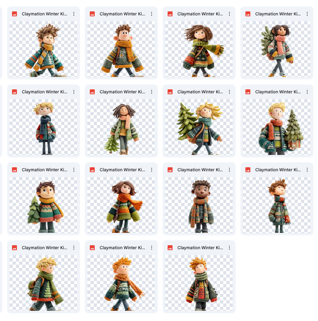 Enhance your compositions with playful, claymation-modeled children, adding depth and personality to your work.