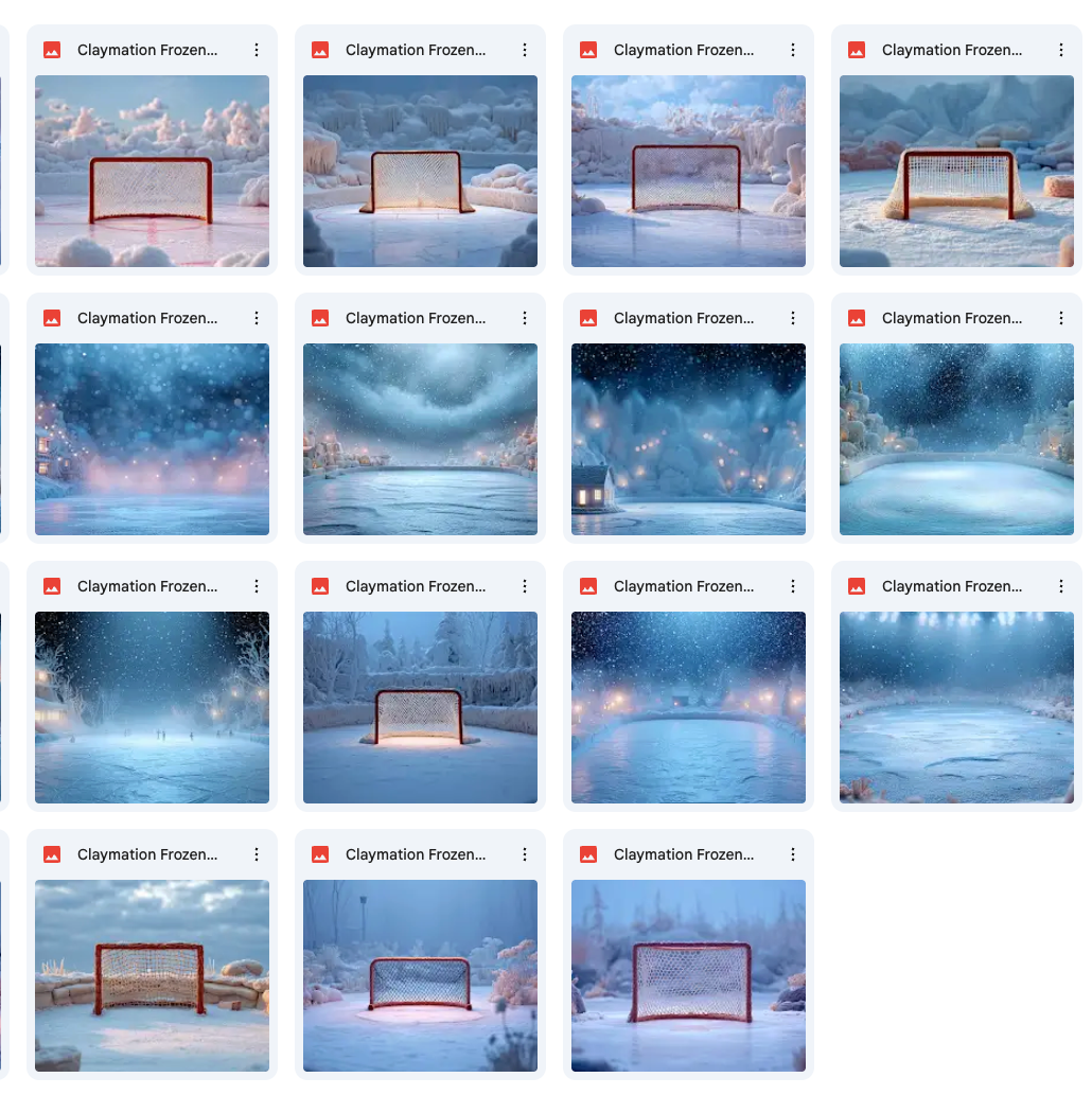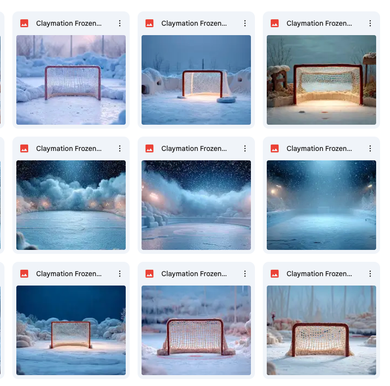 40 high-quality frozen pond hockey claymation backgrounds.