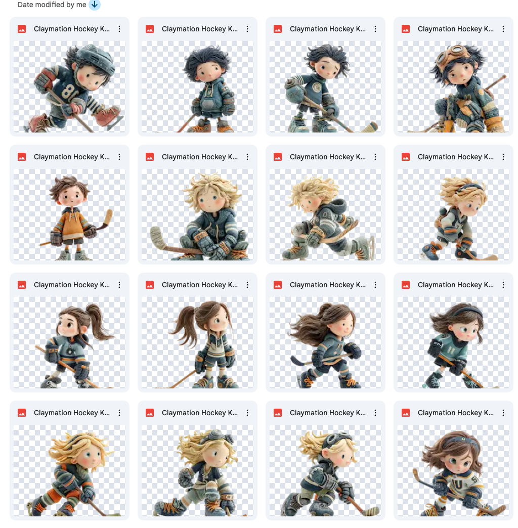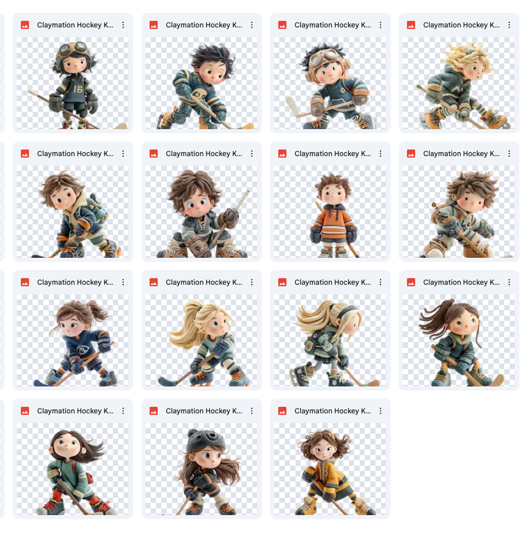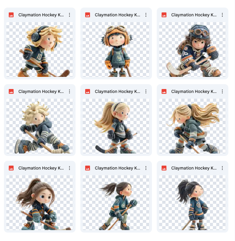 40 claymation hockey kid overlays with varying poses and actions.