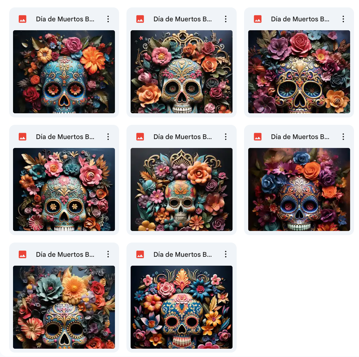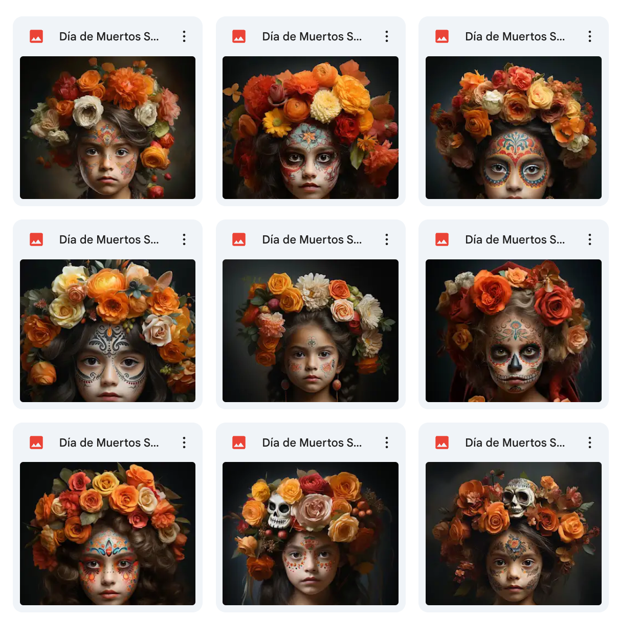 100 Practice Portraits: Gain inspiration and utilize expertly created portraits that capture the essence of Dia de Muertos, ideal for adding depth to your creative projects.