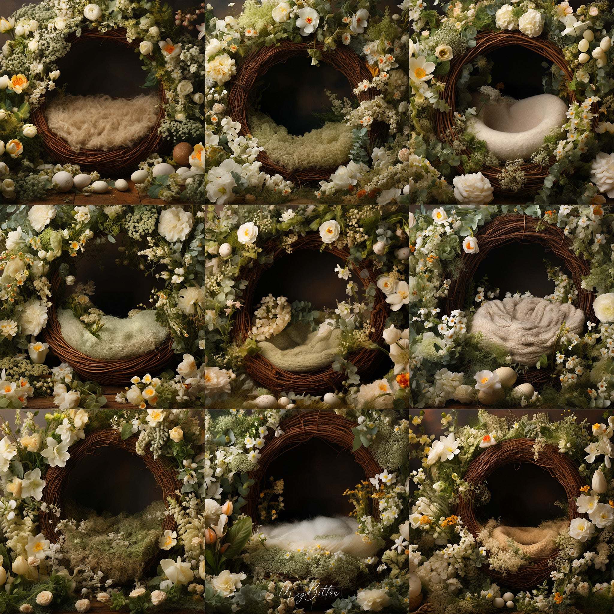 Capture the magic of Easter and create stunning, heartwarming photos with the Easter Newborn Basket Background Bundle. This collection includes 9 beautifully designed backgrounds, perfect for newborn photography sessions. Each background embodies the charm and essence of Easter, featuring pastel hues, delicate floral accents, and basket themes that create a cozy and enchanting ambiance.
