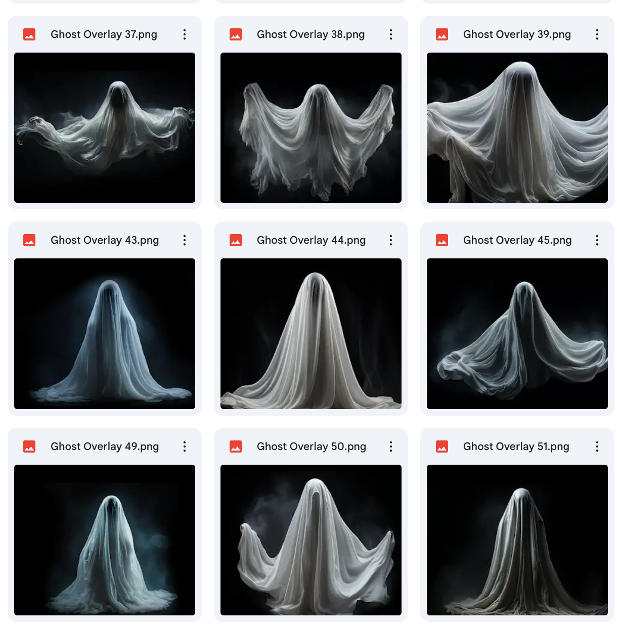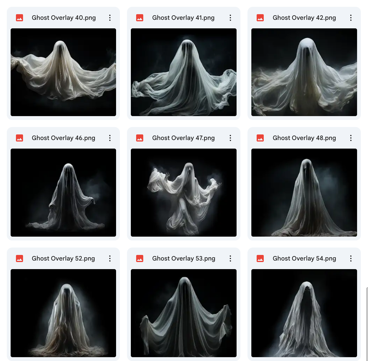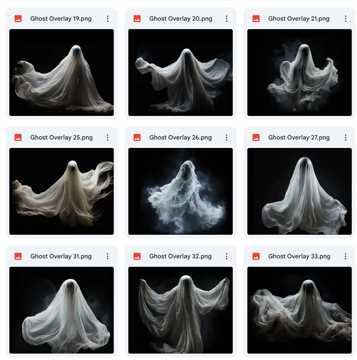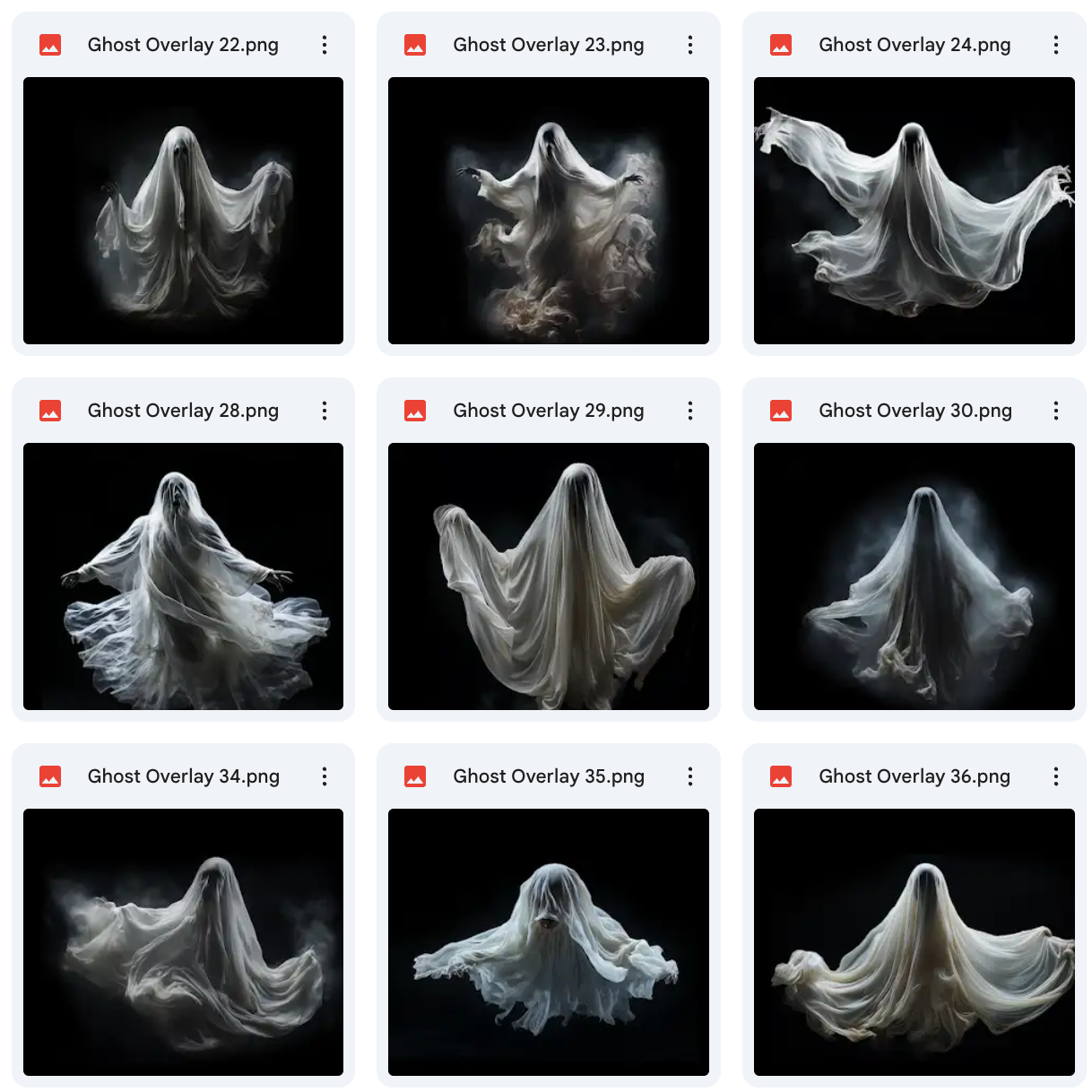60 Ghost Overlays: Enhance your scenes with spectral presences that add an extra layer of creepiness to your visuals.