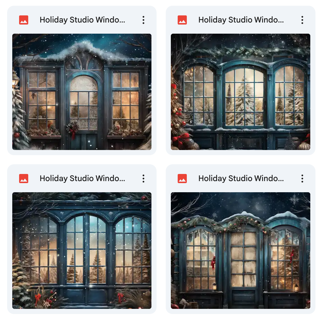 Capture the joy and magic of the holiday season with the Holiday Studio Window Background Bundle. This enchanting collection features nine whimsical holiday-inspired backgrounds, perfect for photographers looking to add a festive touch to their portraits. Each background is carefully crafted to evoke the warmth and wonder of the holidays, making your photos truly unforgettable.