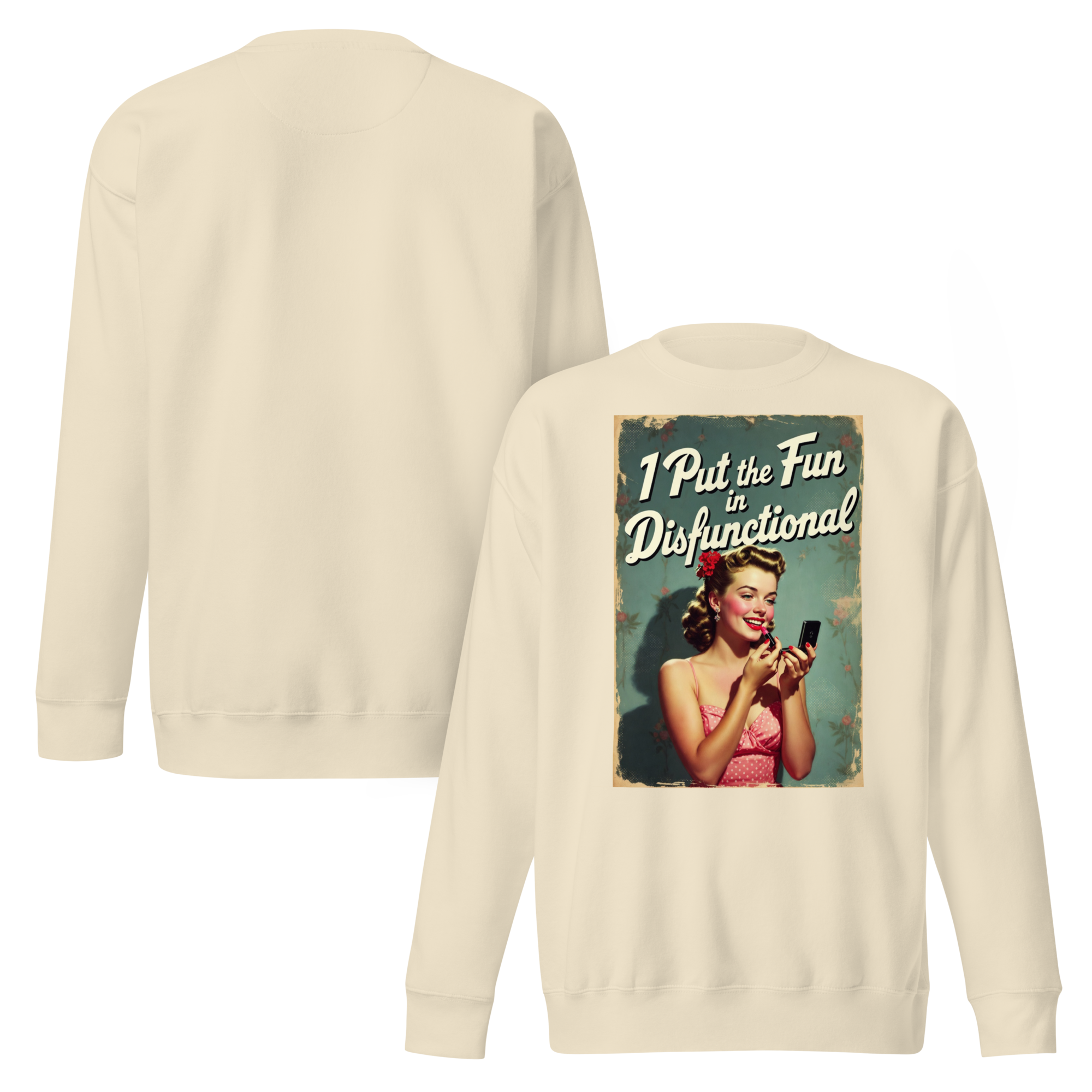 Add some sass and personality to your wardrobe with the "Coffee & Chaos" sweatshirt. Featuring a bold pin-up graphic and a classic silhouette, this sweatshirt is both stylish and comfortable. Perfect for layering or rocking on its own, it’s designed for a contemporary streetwear vibe with a dash of cheeky humor. Whether you’re lounging at home or heading out, this sweatshirt is guaranteed to make a statement.