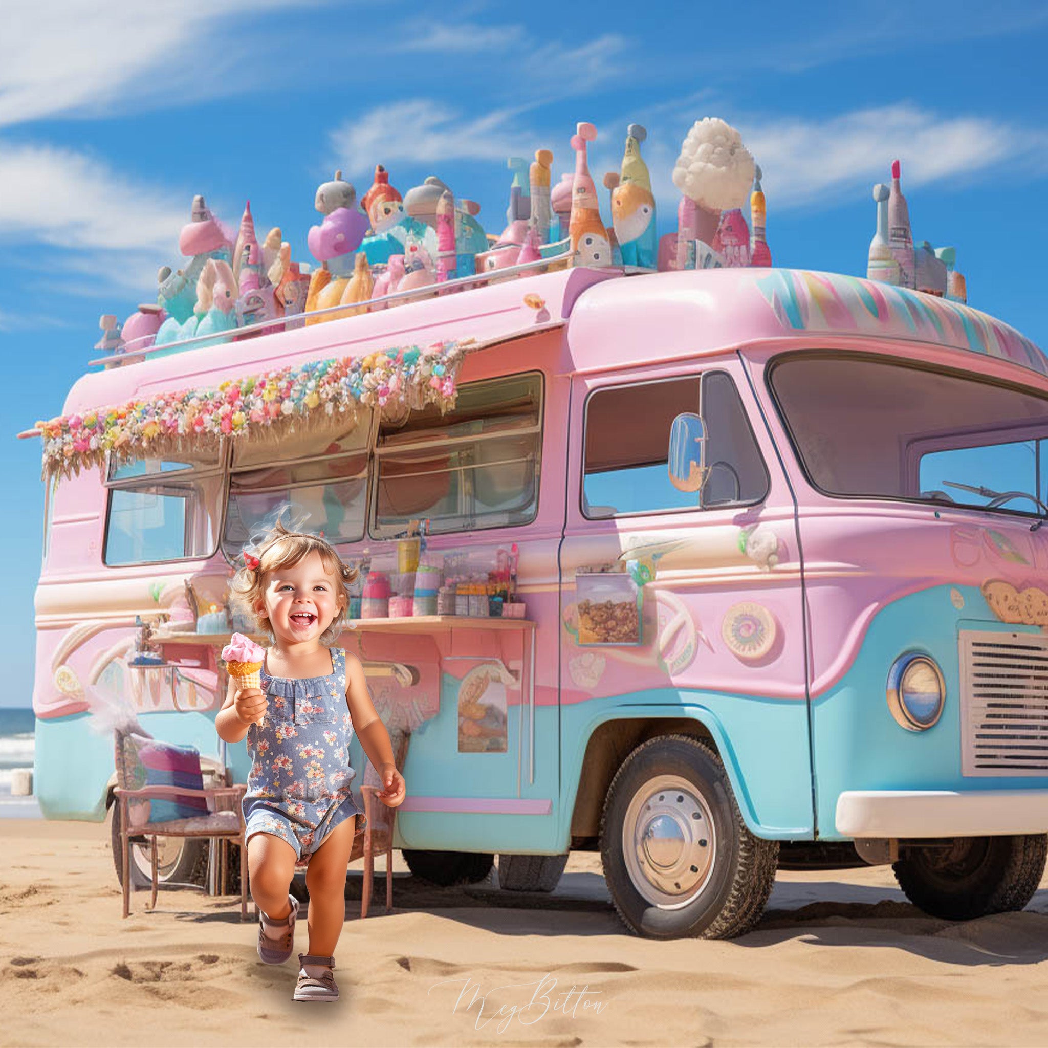 The Ice Cream Truck Asset Pack offers 100 whimsical digital backgrounds and 60 cold treat overlays, including ice cream and shaved ice. Perfect for composite photographers, this pack allows you to craft delightful scenes. Add a touch of nostalgia and sweetness to your projects effortlessly with these vibrant, fun assets.