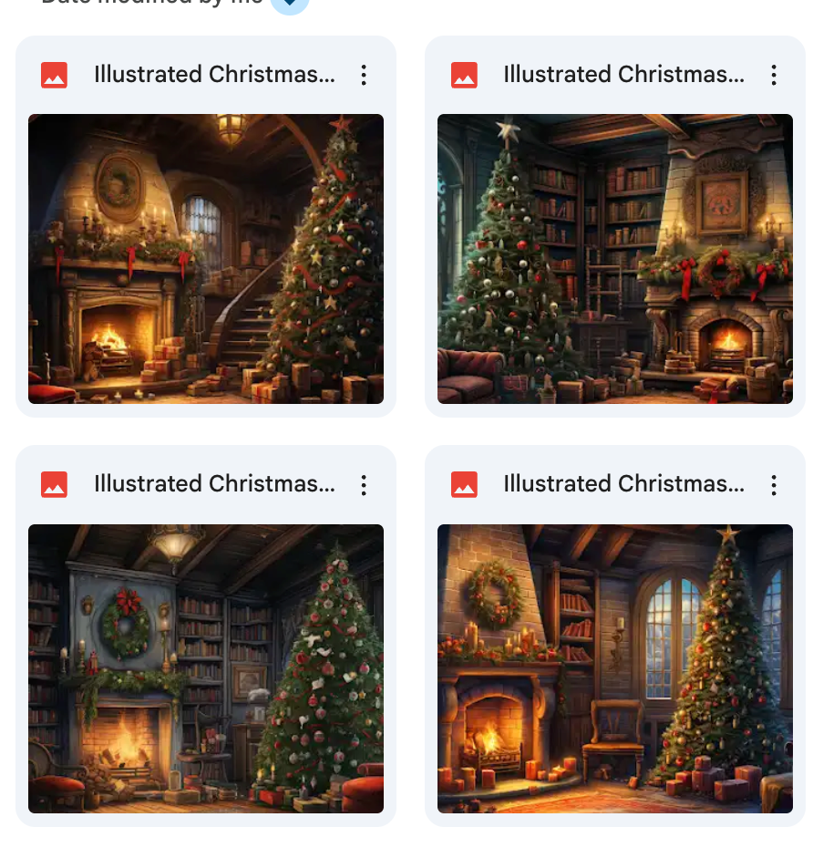9 Unique Backgrounds: A variety of dreamy Christmas scenes, including snowy landscapes, cozy fireplaces, and twinkling lights.