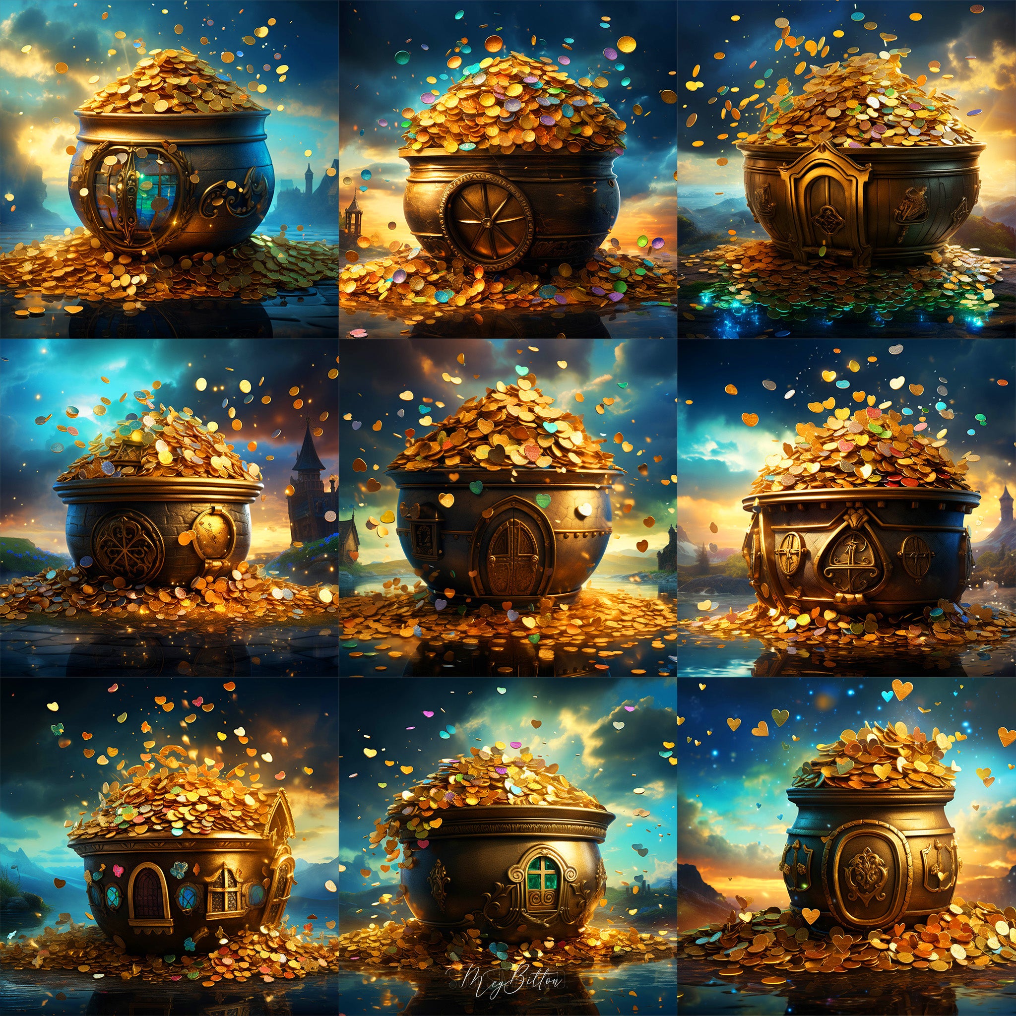 Ready to charm your clients or dazzle your digital audience? Click 'Add to Cart' and make your designs magically captivating with the Lucky Pot of Gold Background Bundle—your pot of gold at the end of the creative rainbow!