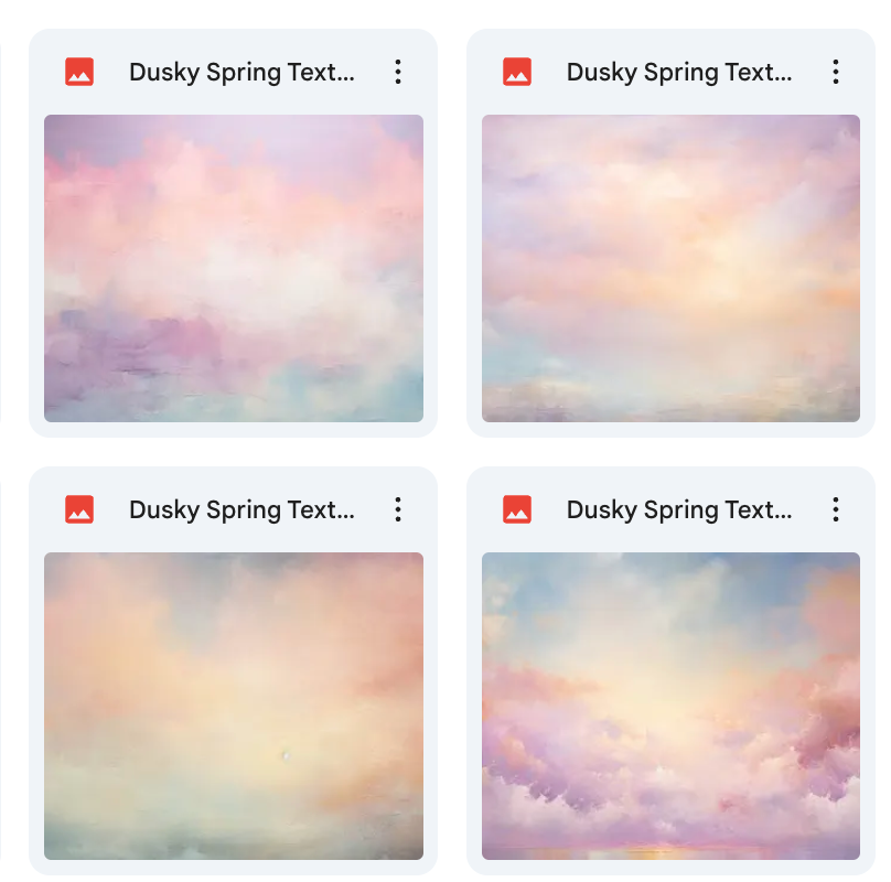 10 Unique Textures: A varied selection of high-quality textures inspired by the soft, pastel tones of spring sunsets and dusky skies.ย