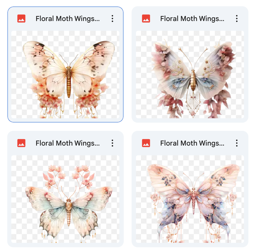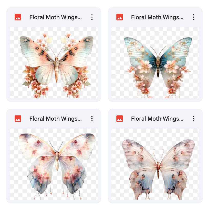 Introducing the Magical Floral Moth Wings Overlays, a set of 10 exquisite and whimsical floral moth-inspired fairy wing overlays perfect for composite photographers. Transform your photos with these ethereal and enchanting designs, adding a touch of fantasy and elegance to your creative projects. Elevate your artistry with these stunning overlays.