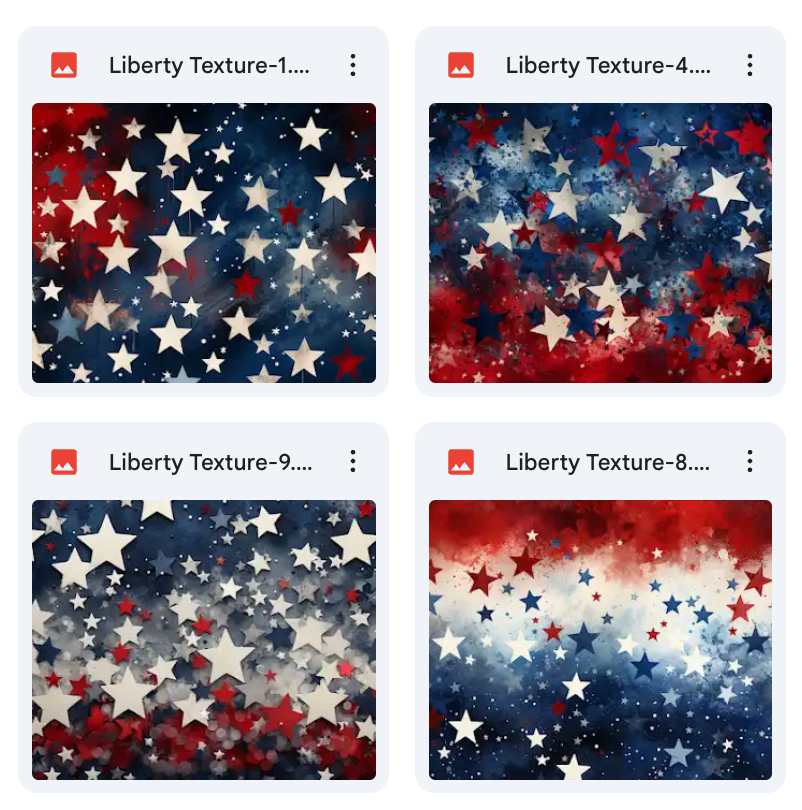 10 Unique Designs: A diverse range of 4th of July-inspired textures, including stars, stripes, and celebratory patterns.
