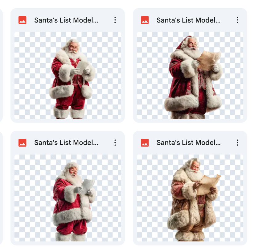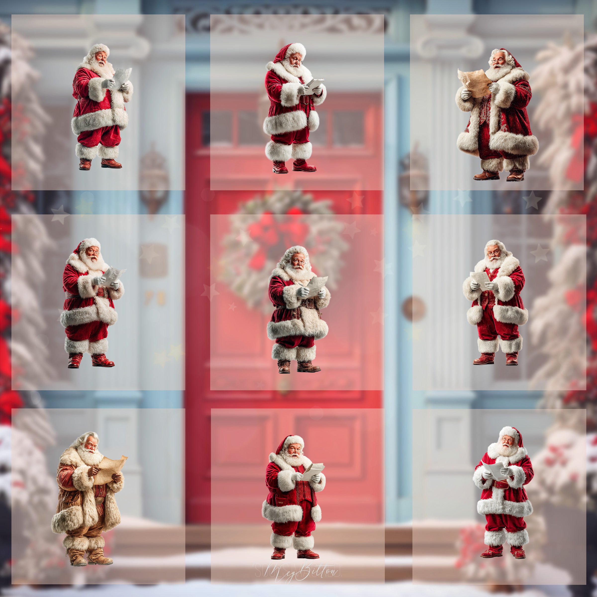 10 Unique Overlays: Diverse Santa poses with his list to suit any holiday photo composition.