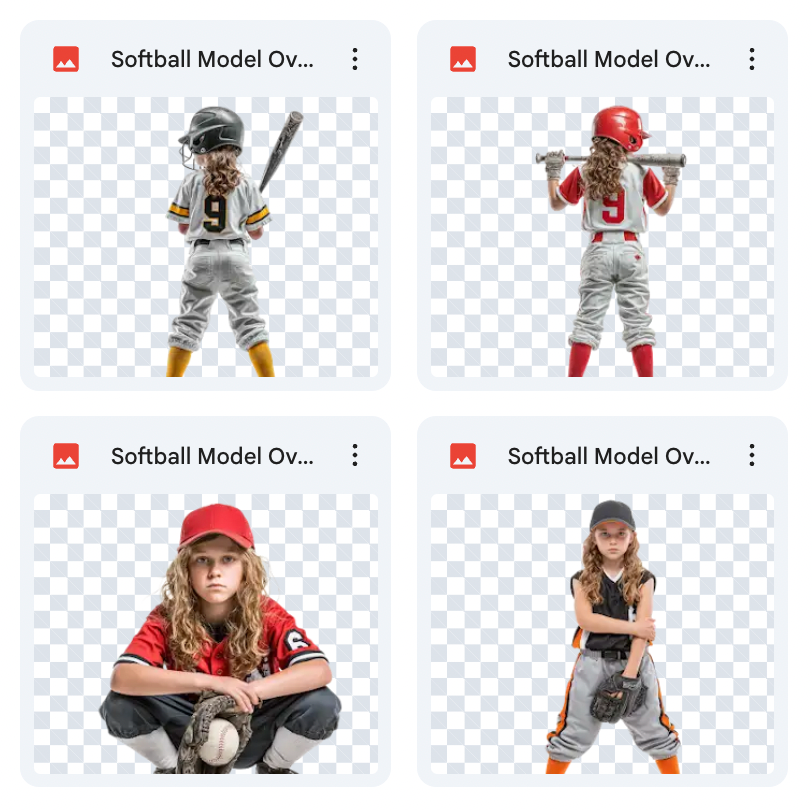 10 Unique Overlays: A diverse selection tailored for softball and action-themed composites.