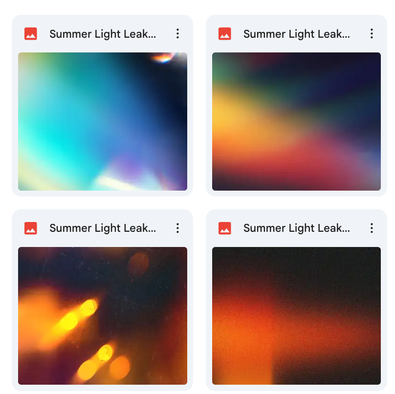 Transform your photos with the Magical Summer Light Leak Overlays, a stunning collection of 10 professionally crafted light leak effects. Perfect for photographers and creatives, these overlays add a warm, sunlit glow to your images, capturing the essence of summer with ease and style.