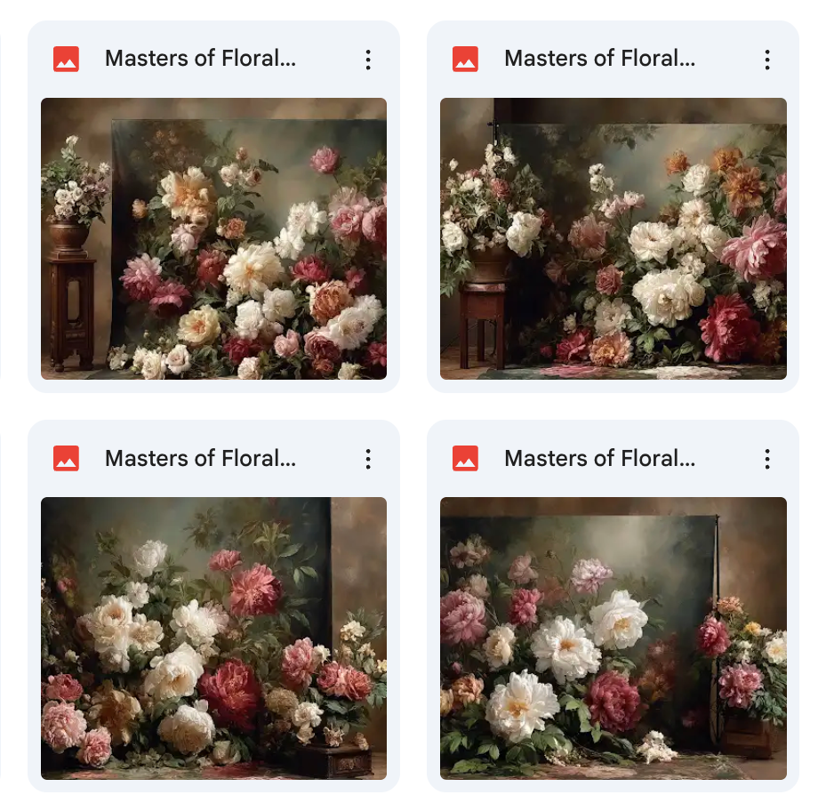 Transform your photography with the Masters of Floral Background Bundle, a stunning collection of 9 elegant fine art studio digital backgrounds. Designed to elevate your creative projects, this bundle is perfect for photographers aiming to add a touch of sophistication and artistry to their work. Each background features exquisite floral details and rich textures, creating a timeless aesthetic.