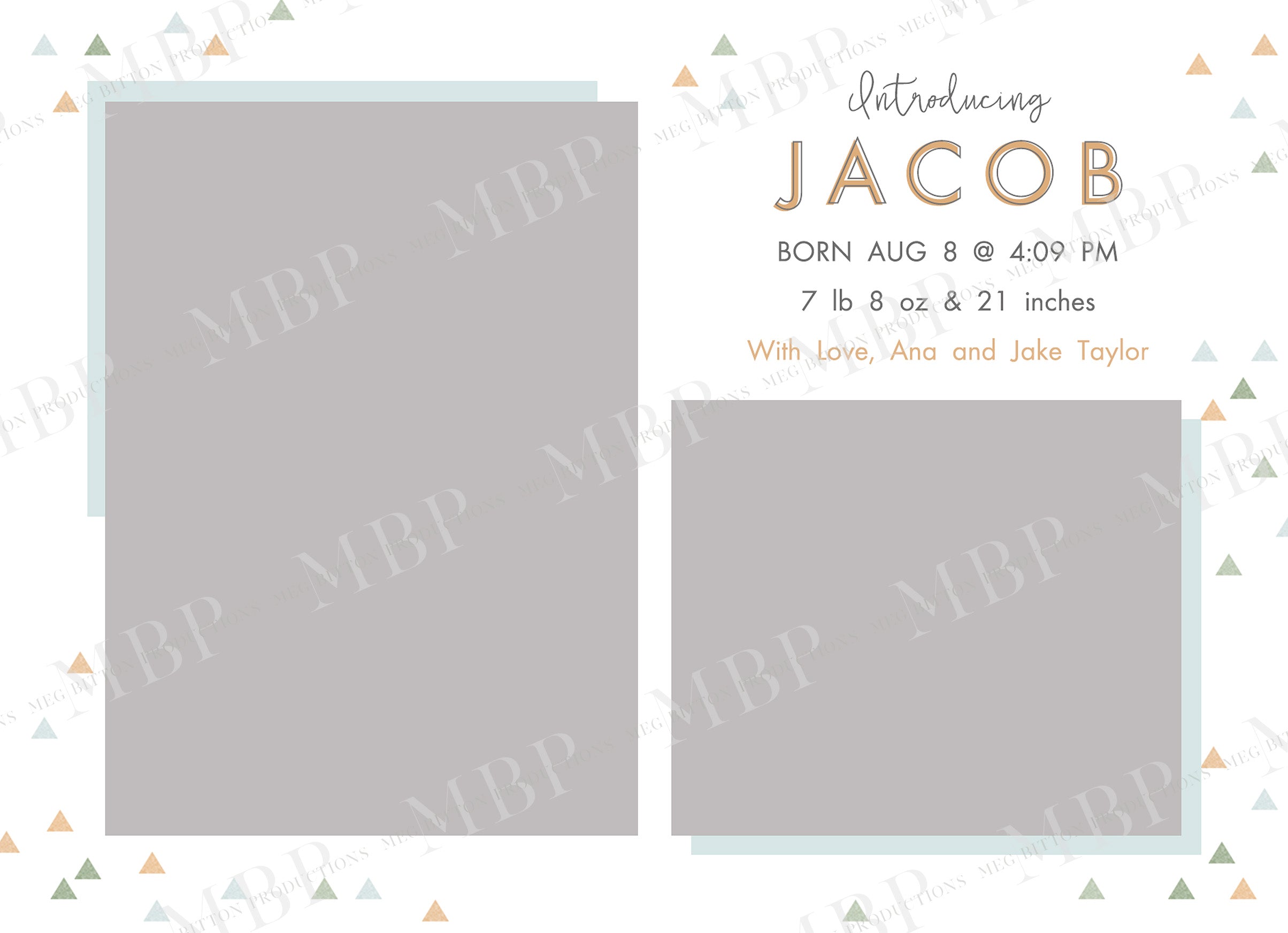 Introducing our beautifully designed Birth Announcement Template, a .PSD file perfect for creating stunning announcements to celebrate the arrival of new life. This template is fully customizable, allowing you to effortlessly add personal touches and make each announcement unique for your clients. With easy-to-use layers and high-quality design, it provides a professional and polished look that new parents will cherish forever.