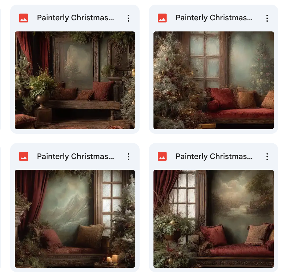 Make every holiday portrait a masterpiece with the Painterly Christmas Studio Background Bundle!