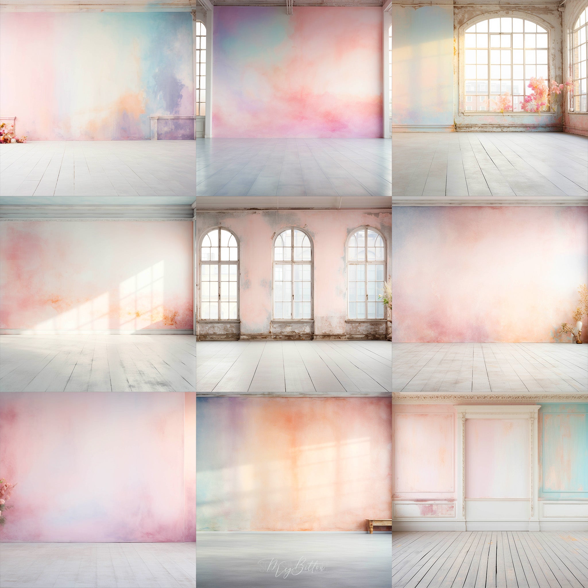 Transform your photography with the Pastel Grunge Room Background Bundle, a collection of 9 stunning fine art pastel room digital backgrounds. Perfect for creating unique, artistic, and stylish visuals, these backgrounds are designed with photographers in mind to enhance their creative projects.