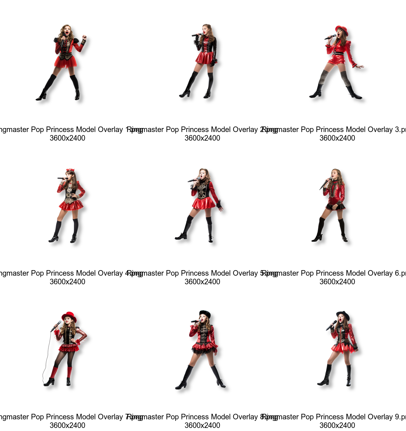 Introducing the Pop Princess Asset Pack – your ultimate toolkit for channeling the dazzling world of pop stardom into your creative projects. This meticulously curated pack contains an eclectic mix of vibrant backgrounds, model overlay sets, and miscellaneous overlays, all inspired by the glitz and glamour of your favorite pop icon. Unleash your creative potential and add a touch of sparkle to your work with this exclusive collection.