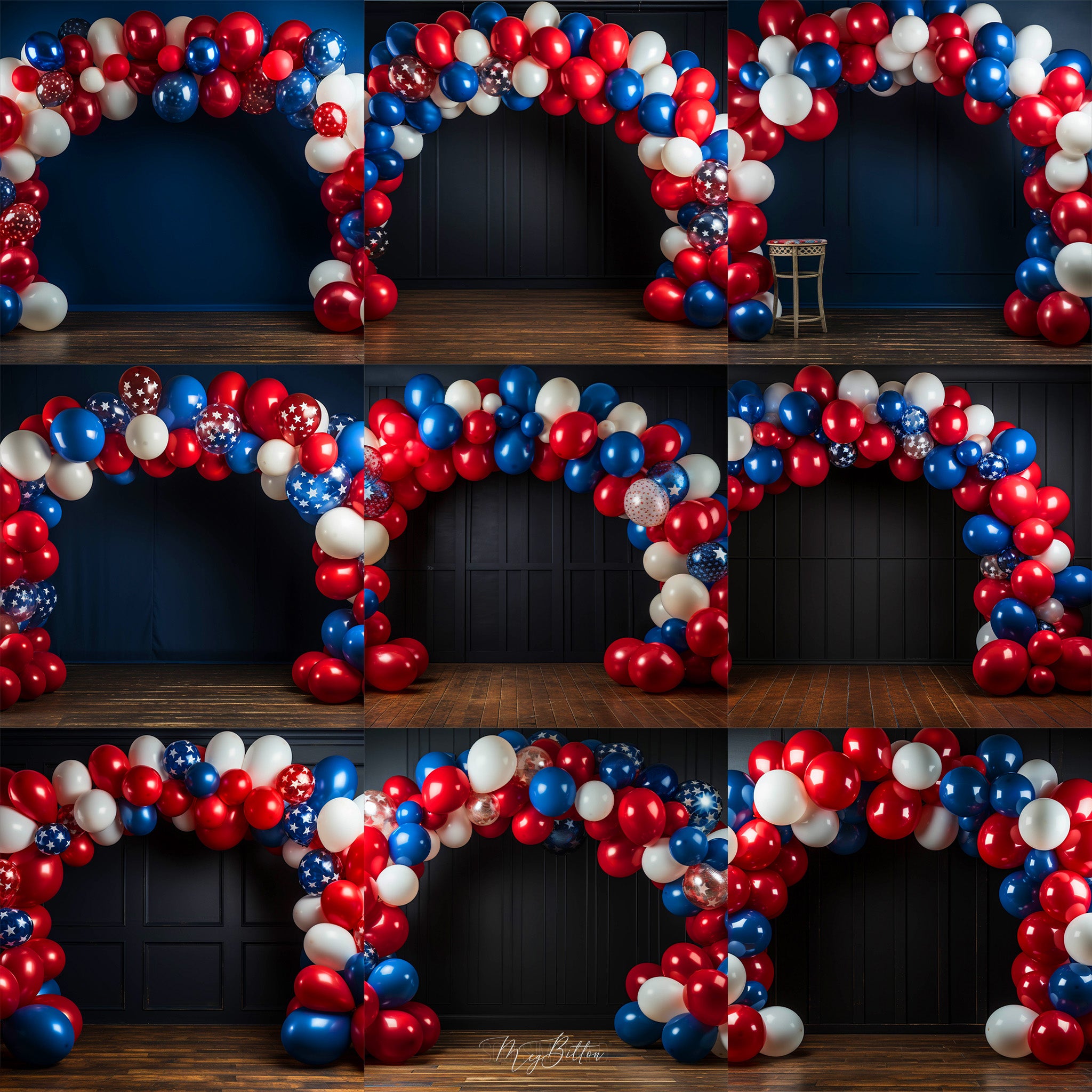 Elevate your photography with the Red White and Blue Balloon Arch Background Bundle! This collection of 9 vibrant, high-resolution digital backgrounds is perfect for creating eye-catching and festive images. Whether you're capturing moments for patriotic celebrations, themed parties, or special events, these versatile backdrops will add a touch of fun and color to your photos.