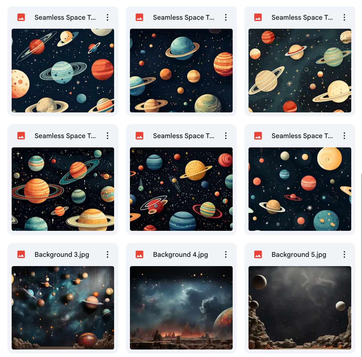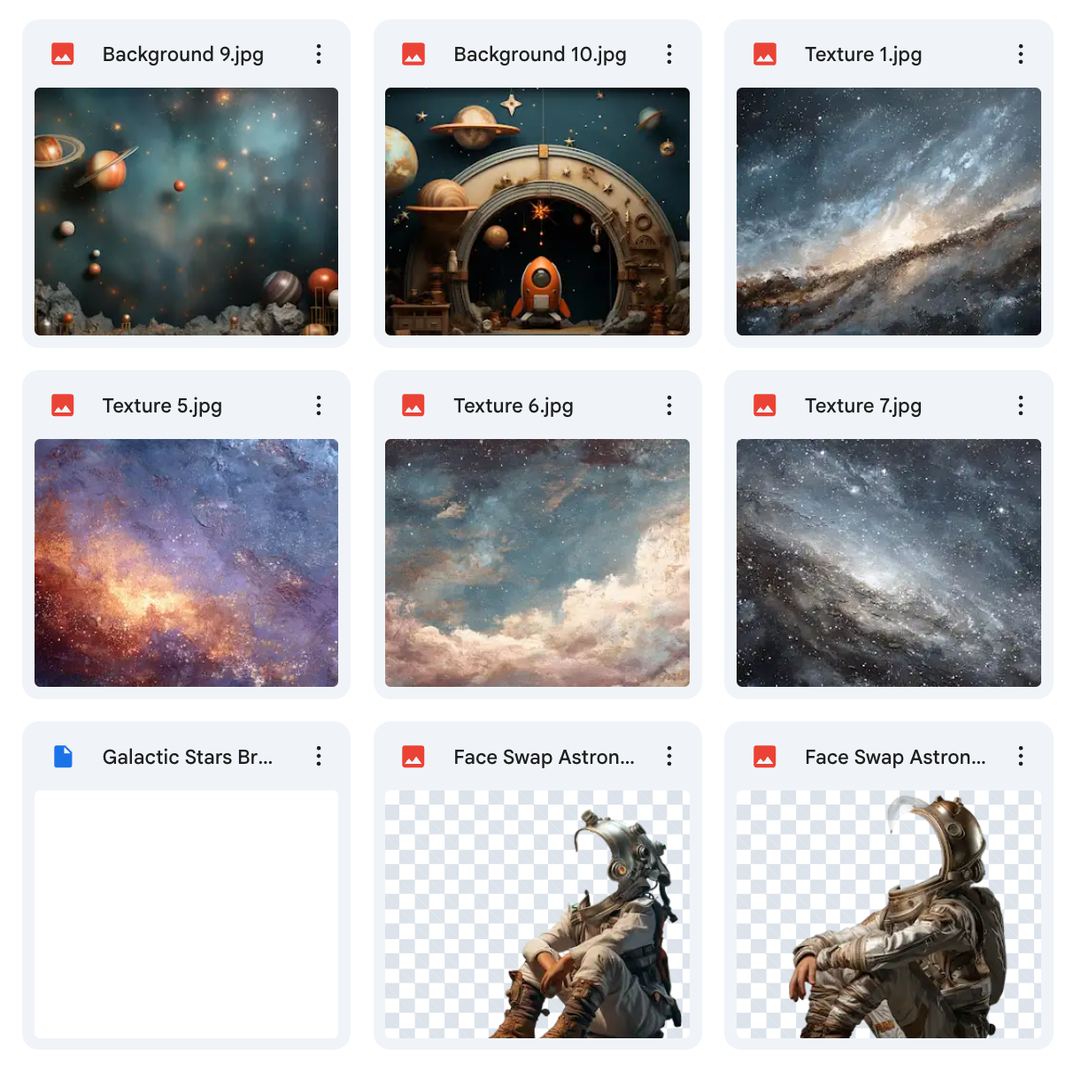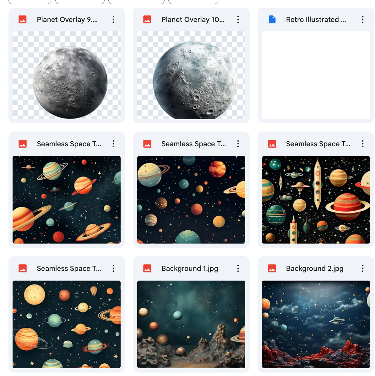Backgrounds: A diverse selection of space-themed backgrounds perfect for creating immersive scenes.