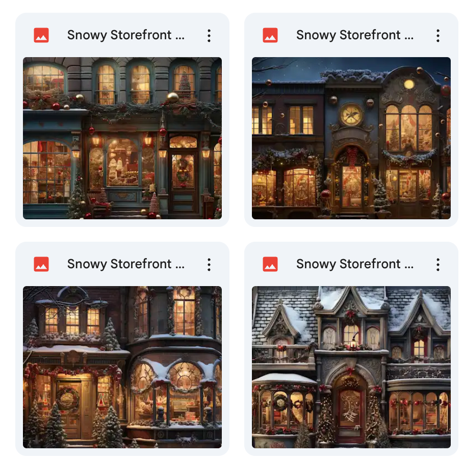 Nine Unique Backgrounds: Each background offers a distinct snowy storefront scene, adding variety and depth to your photography projects.
