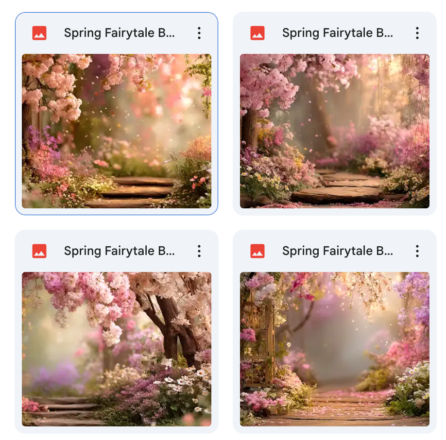 Whimsical Spring Designs – Includes beautiful elements such as blooming flowers, soft light, and dreamy landscapes.