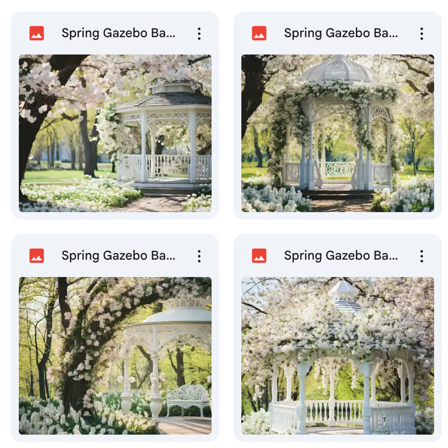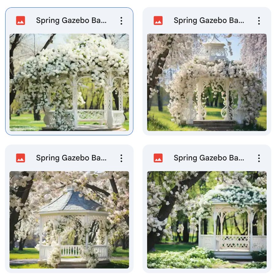 Charming Gazebo Designs - Each backdrop includes a unique gazebo setting surrounded by lush springtime blooms.