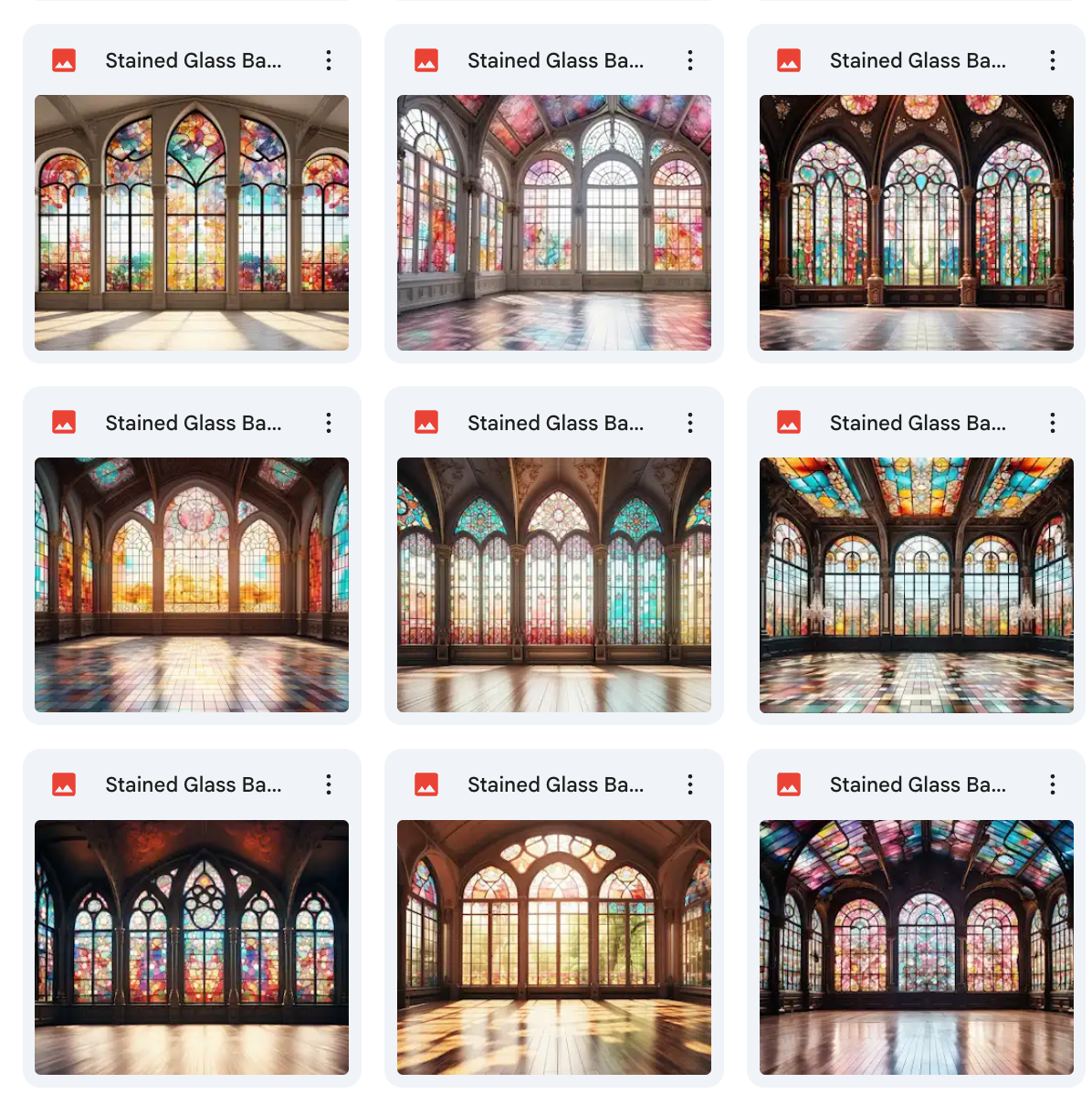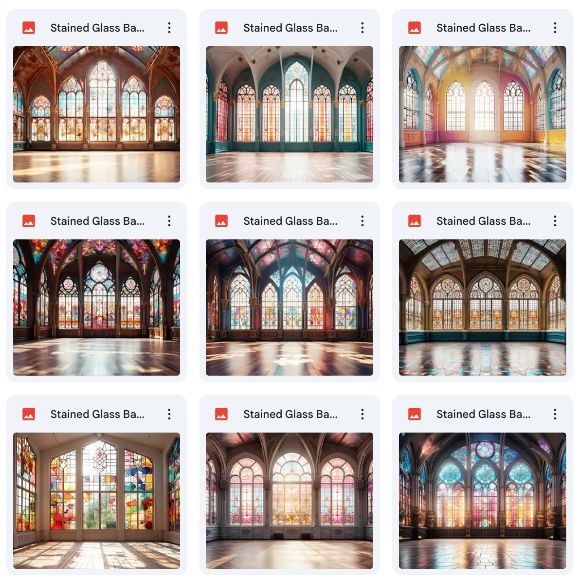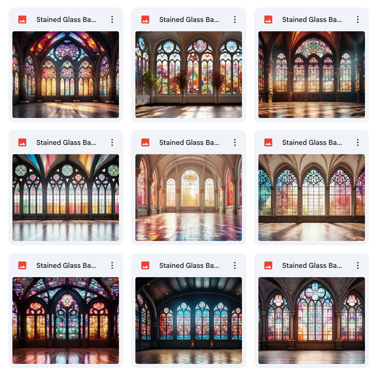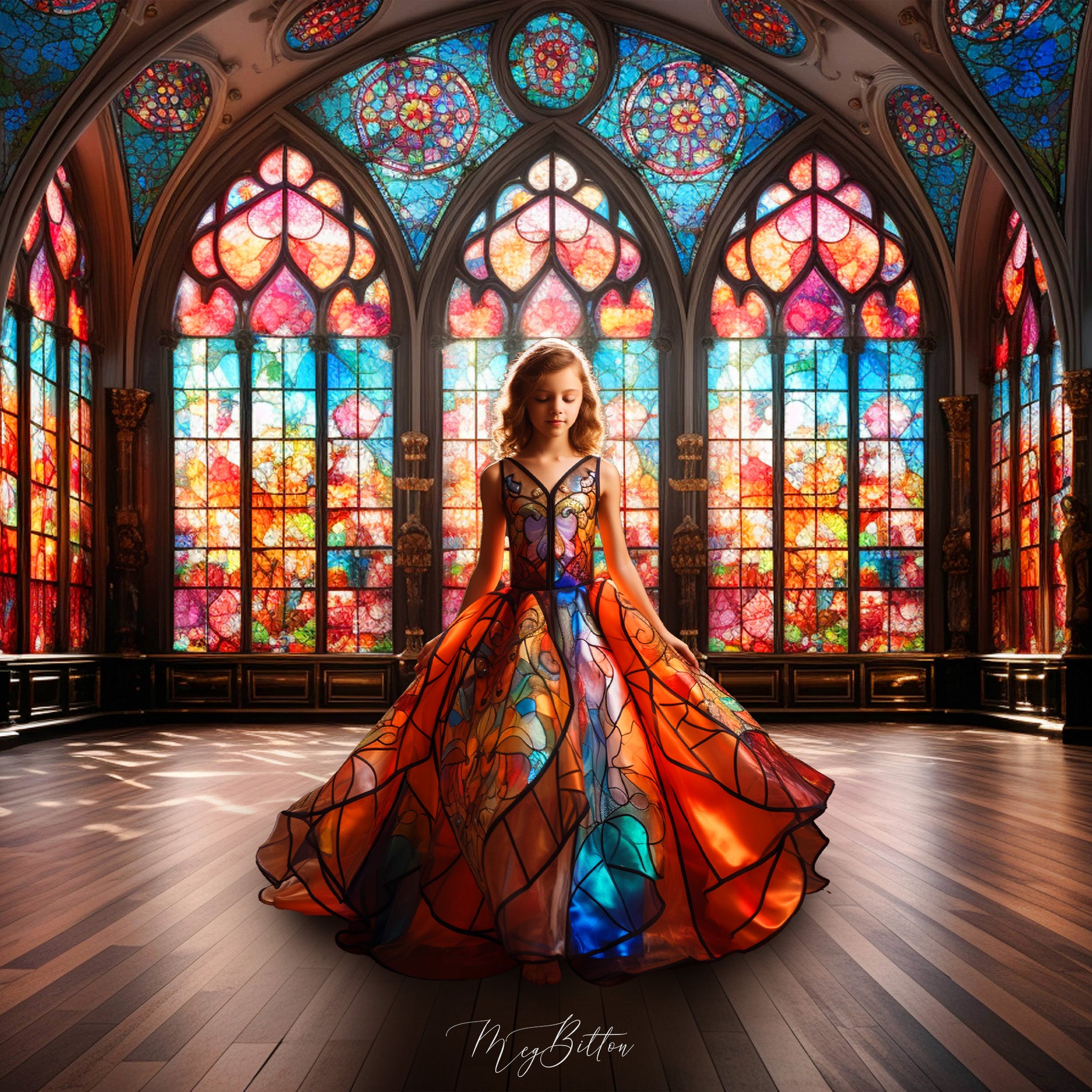 Introducing the Stained Glass Asset Pack: a stunning collection featuring 100 beautiful stained glass room backgrounds and 40 model overlays of girls wearing stained glass-inspired dresses. Perfect for enhancing your creative projects with vibrant and intricate designs, this pack provides endless possibilities for artistic expression.