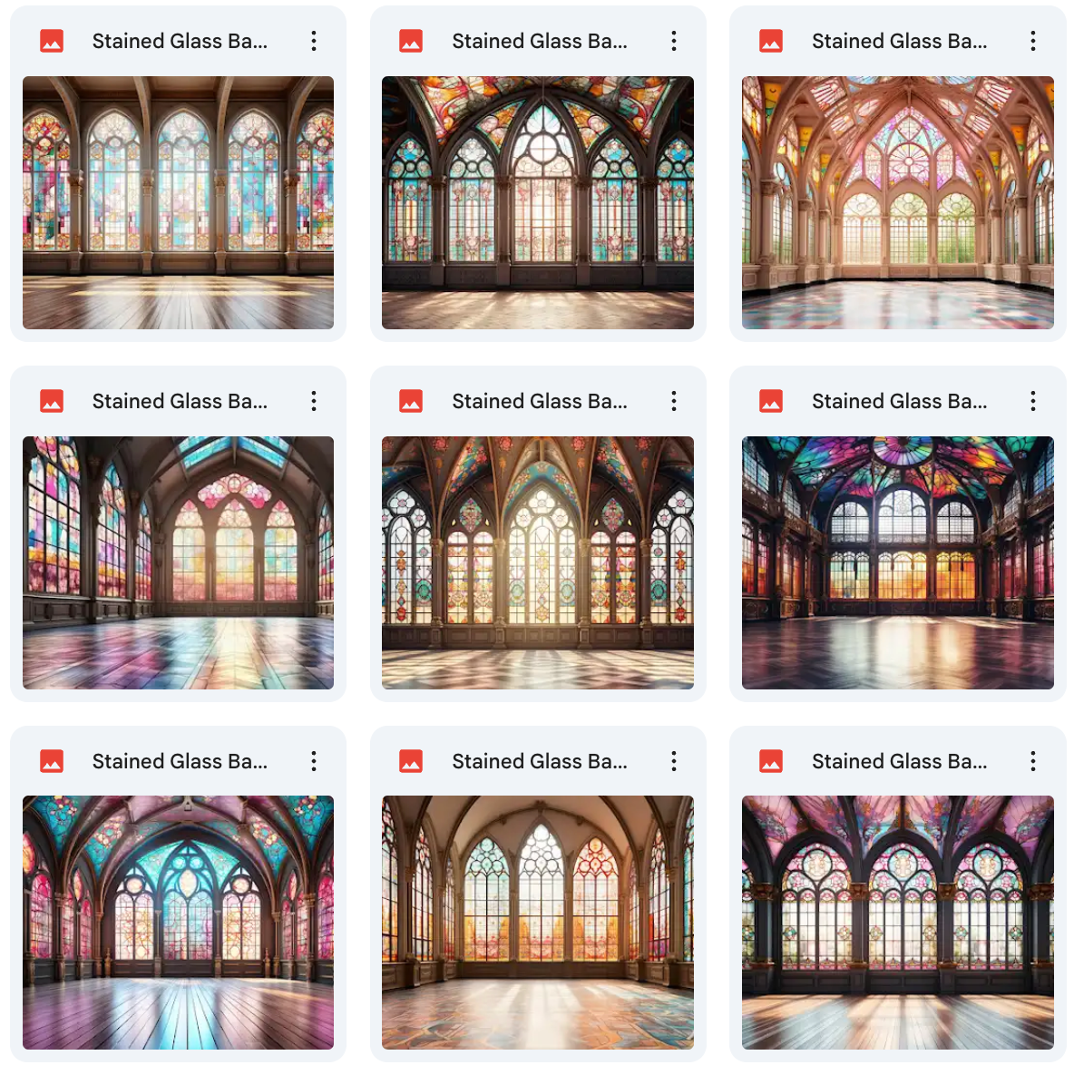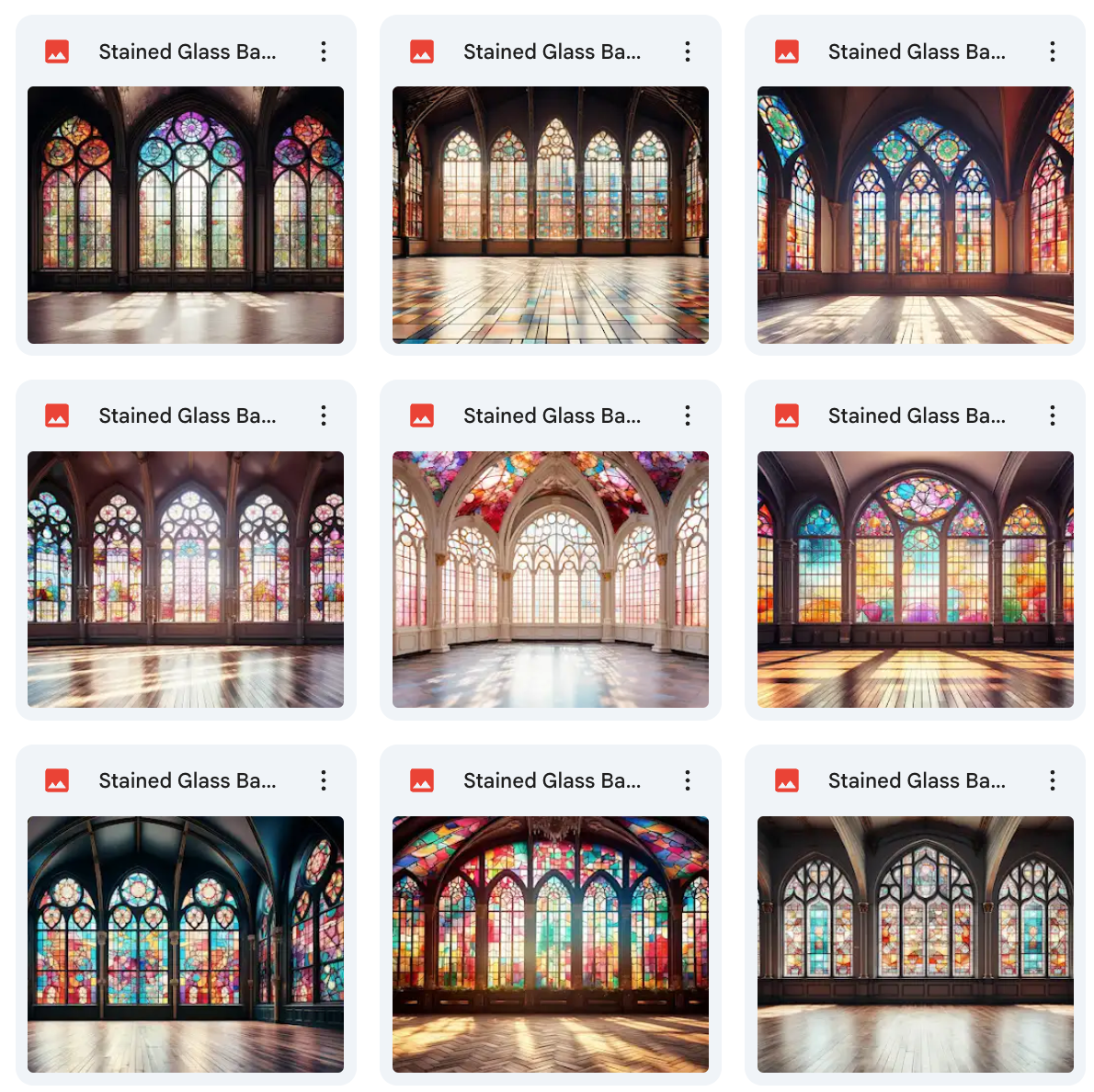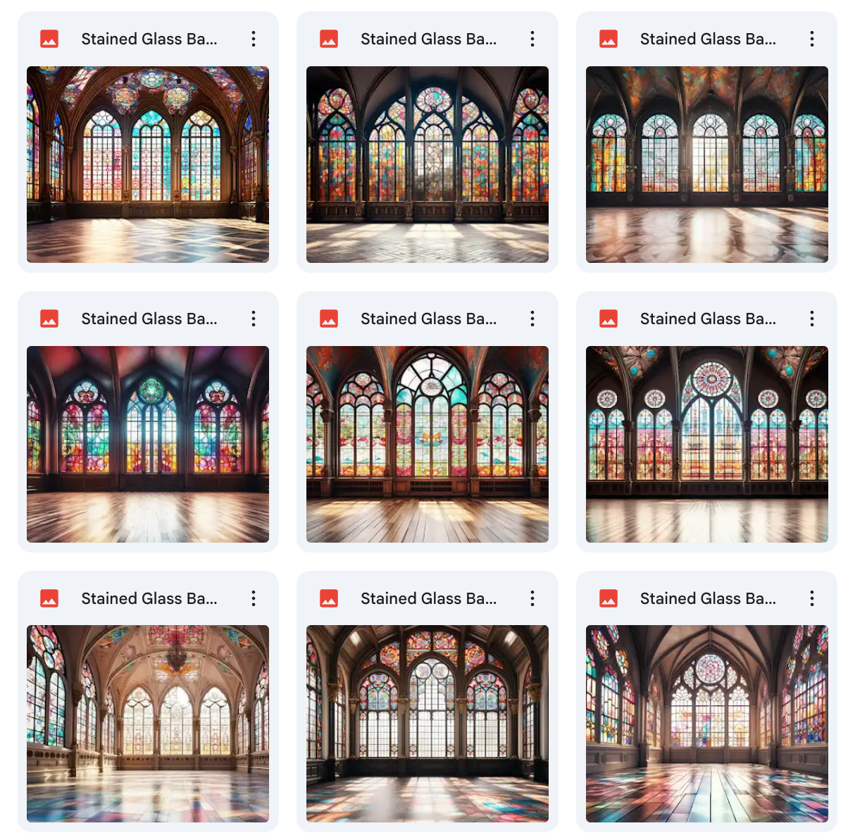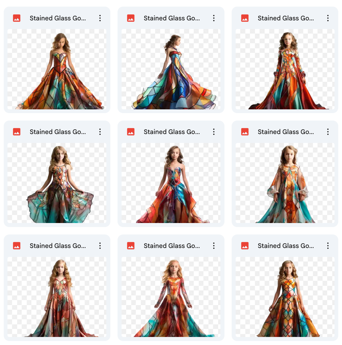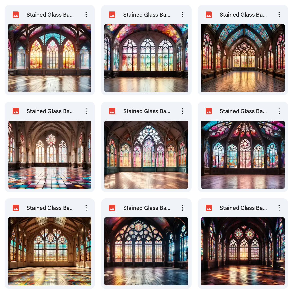 Introducing the Stained Glass Asset Pack: a stunning collection featuring 100 beautiful stained glass room backgrounds and 40 model overlays of girls wearing stained glass-inspired dresses. Perfect for enhancing your creative projects with vibrant and intricate designs, this pack provides endless possibilities for artistic expression.