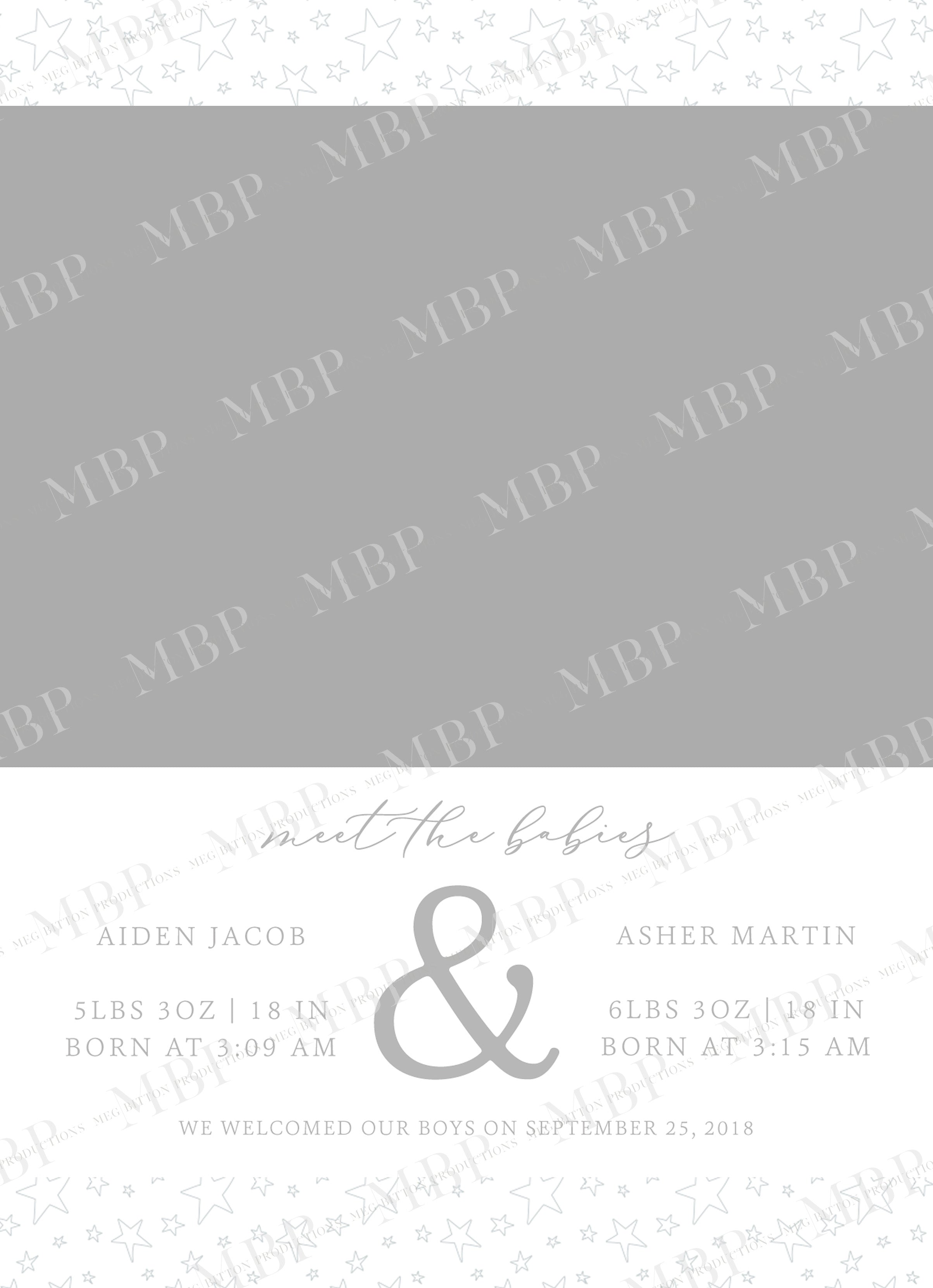 Introducing our beautifully designed Birth Announcement Template, a .PSD file perfect for creating stunning announcements to celebrate the arrival of new life. This template is fully customizable, allowing you to effortlessly add personal touches and make each announcement unique for your clients. With easy-to-use layers and high-quality design, it provides a professional and polished look that new parents will cherish forever.
