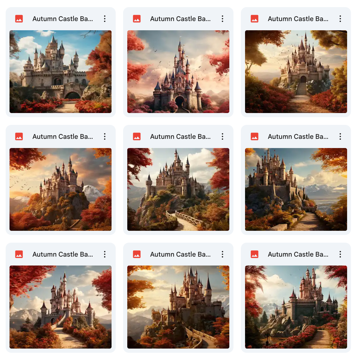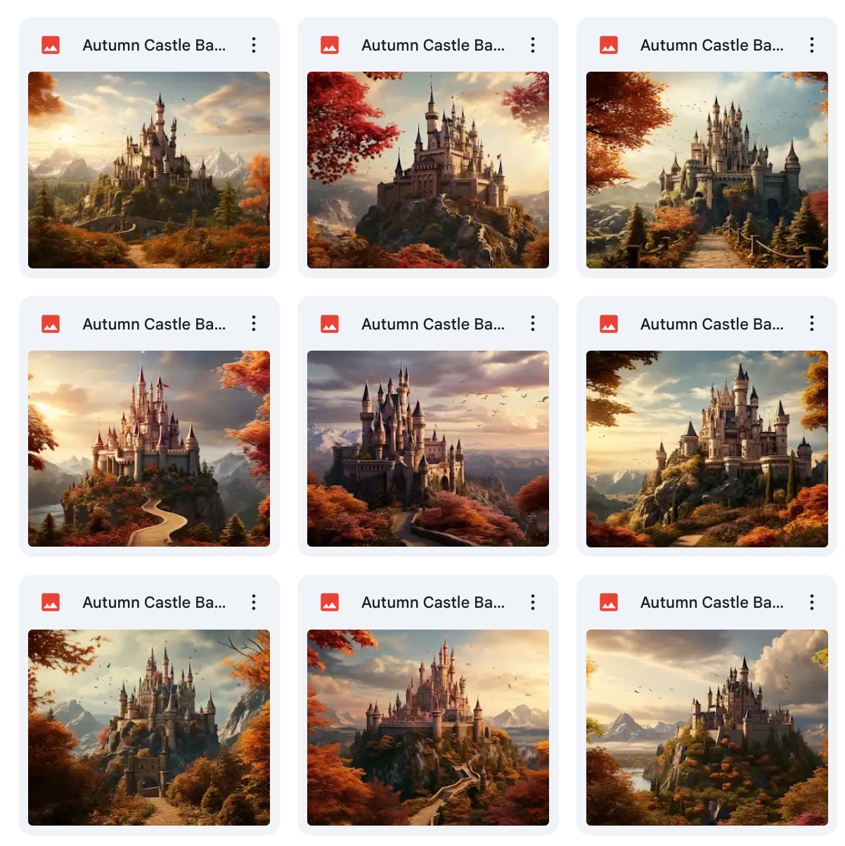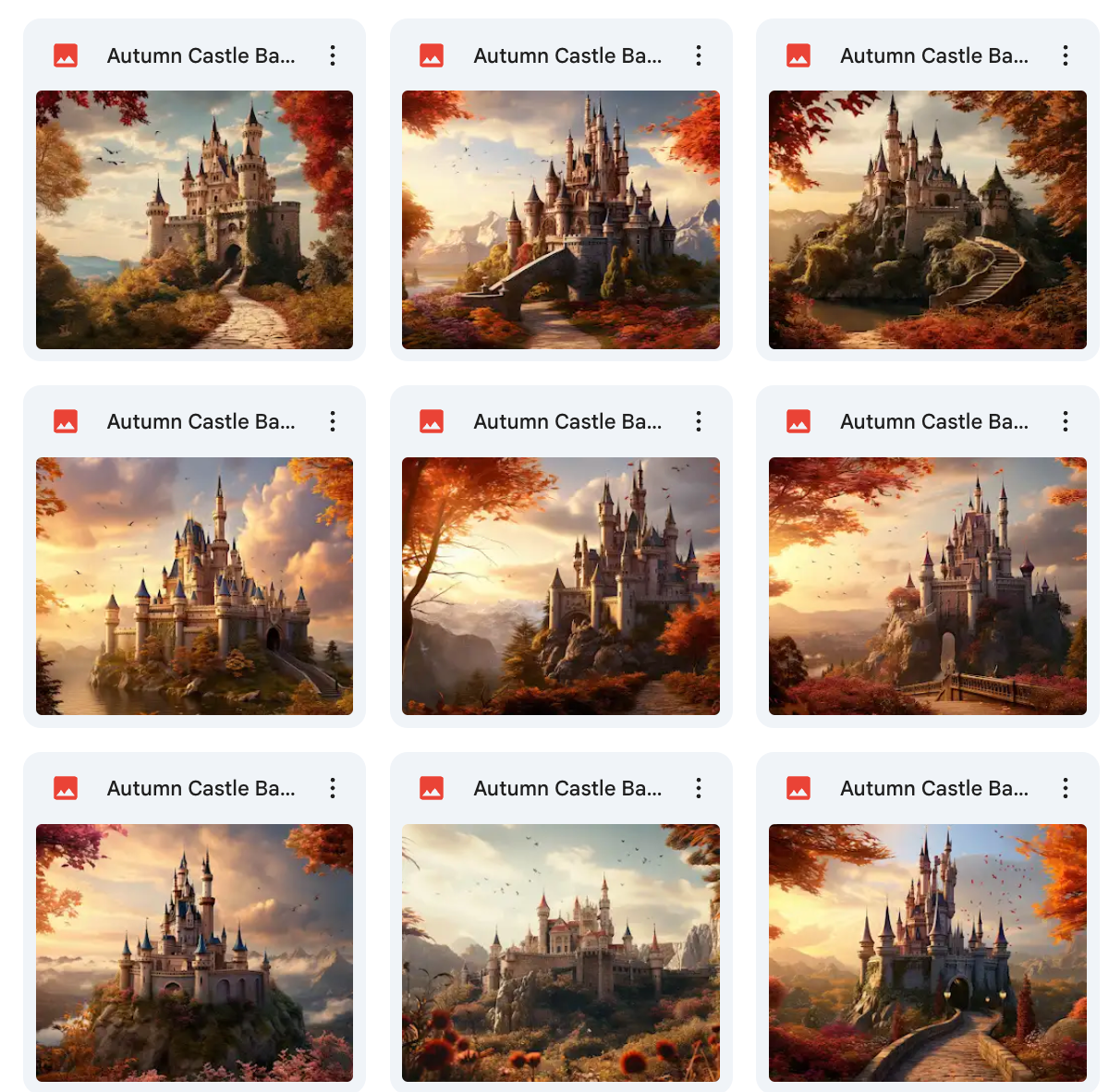 100 Unique Backgrounds: A diverse array of fall-inspired castle scenes to suit any style or mood.