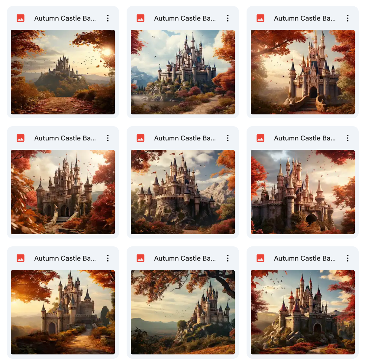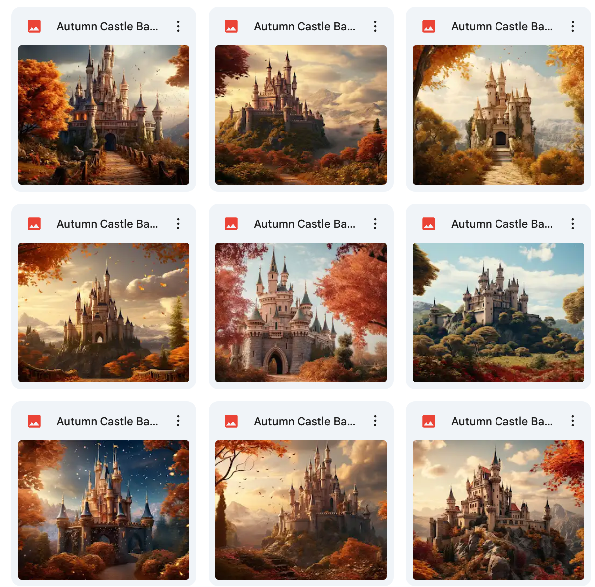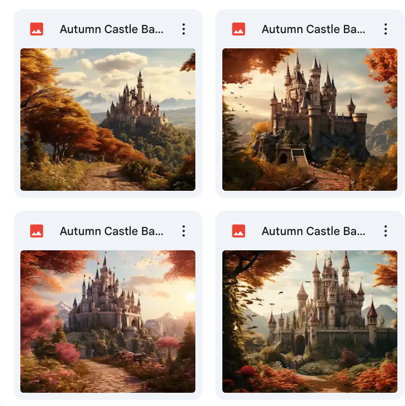 100 Unique Backgrounds: A diverse array of fall-inspired castle scenes to suit any style or mood.