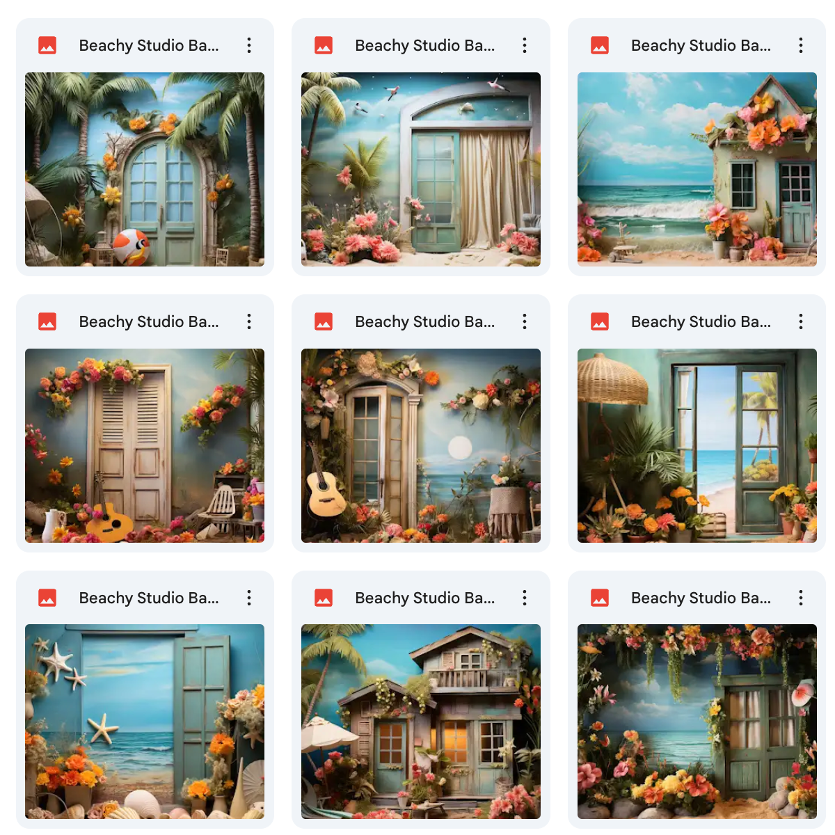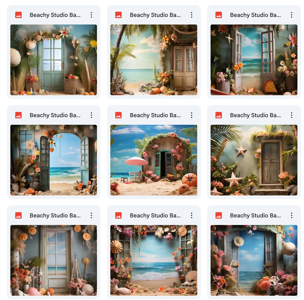The Ultimate Beachy Studio Background Bundle offers 100 high-quality beach-themed digital backgrounds, perfect for photographers seeking to enhance their studio shoots with a coastal vibe. Each background delivers vibrant, sun-soaked scenes, allowing for creative flexibility and stunning results that bring the beach to your studio.
