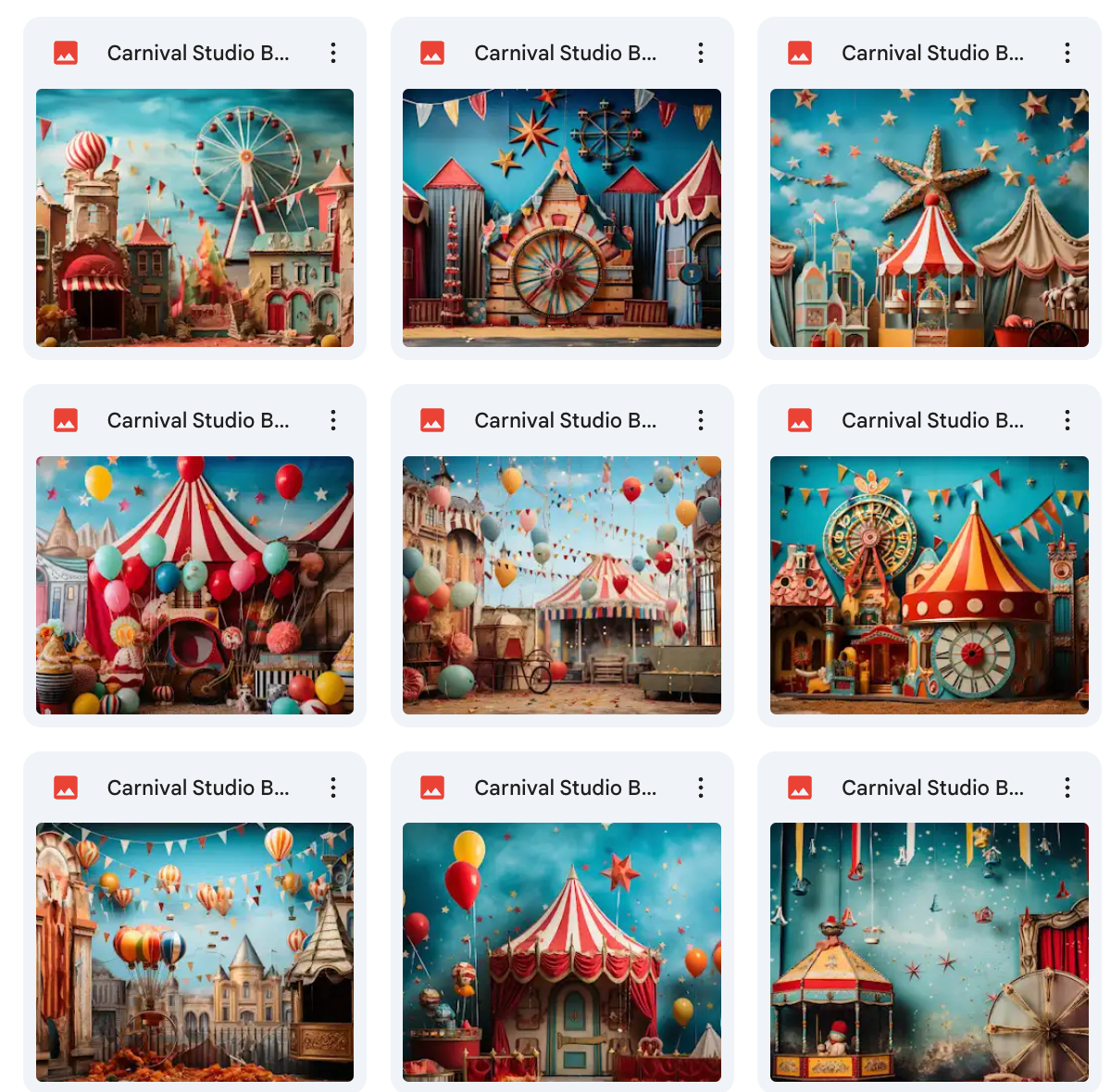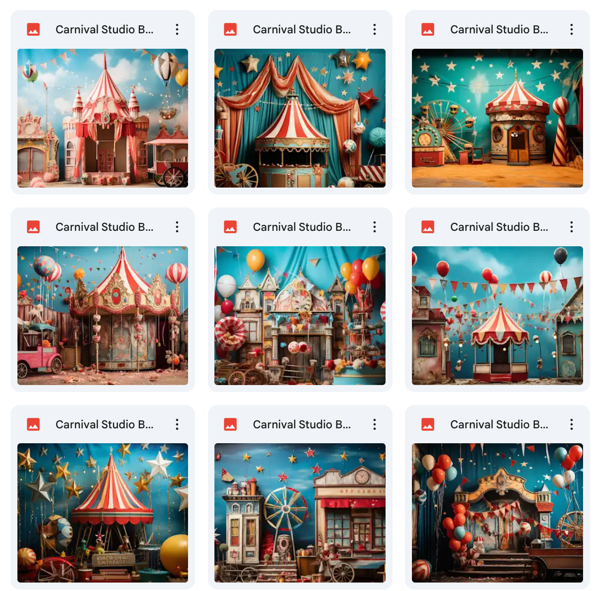 The Ultimate Carnival Studio Background Bundle offers photographers 100 stunning, carnival-themed backgrounds. Perfect for adding vibrant, festive flair to your studio shoots, these high-resolution backdrops capture the essence of carnival celebrations, ensuring your photos are as captivating and joyful as the event itself. Transform your images with this exceptional bundle today!