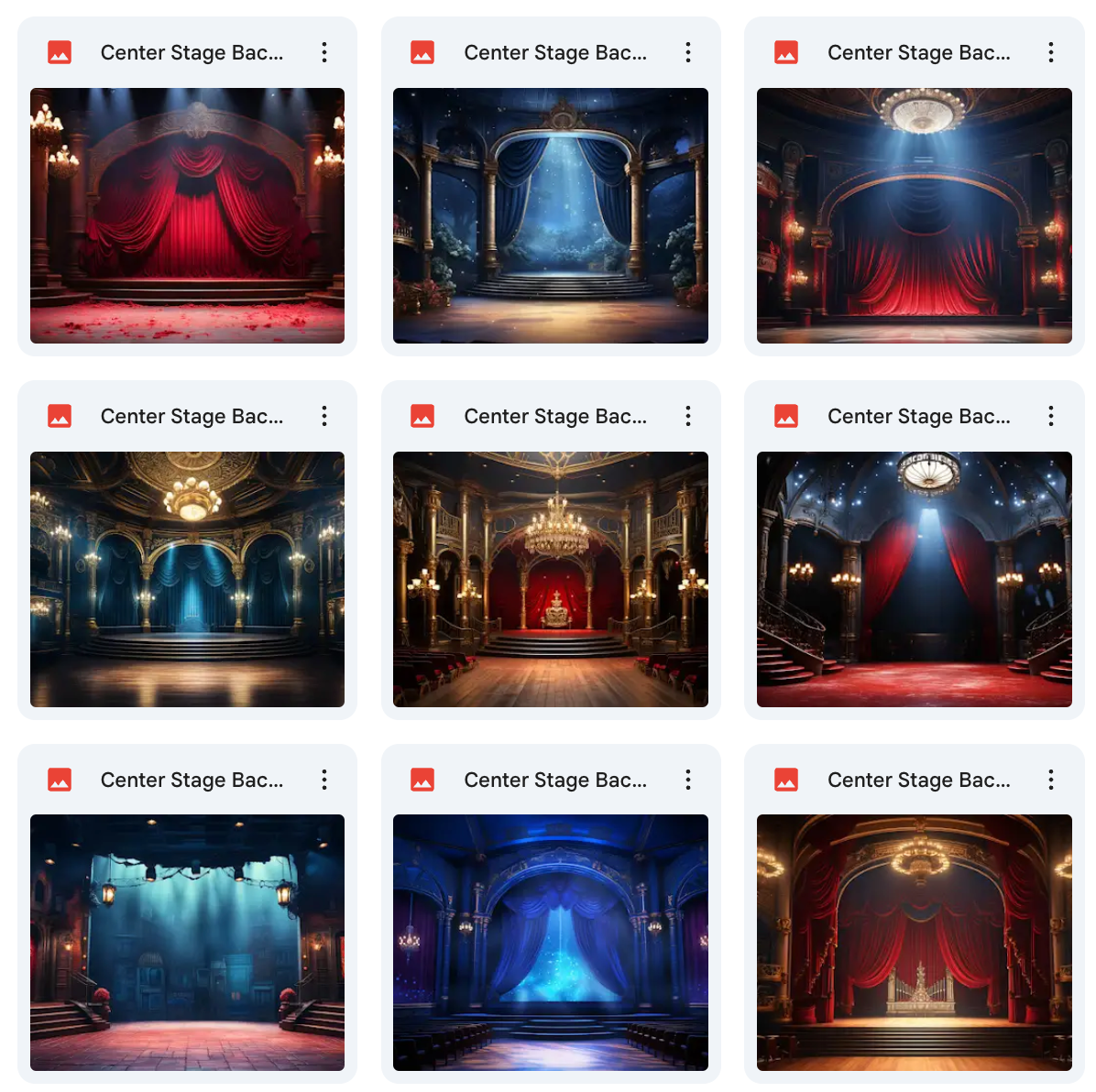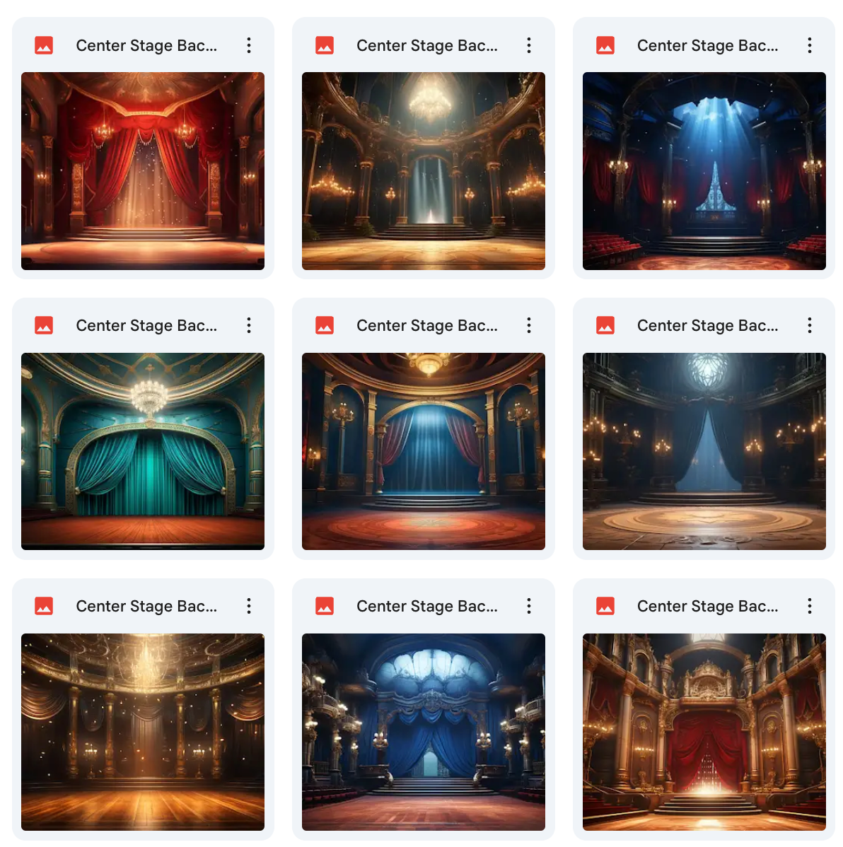 The Ultimate Center Stage Background Bundle offers photographers 100 stunning Broadway-inspired digital backgrounds. Perfect for adding drama and elegance to your shots, this collection enhances any project with vibrant, high-quality stage designs. Transform your photography and let your creativity shine with these professional, theatrical backdrops.