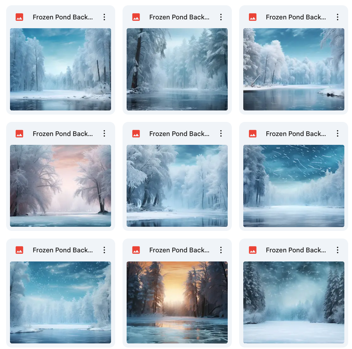 100 High-Resolution Backgrounds: Includes a wide variety of frozen pond scenes to suit any creative vision.