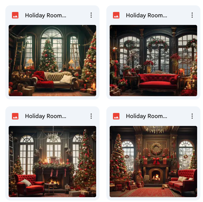 100 Unique Backgrounds: A wide variety of cozy, holiday-themed living room designs to match any festive vision.