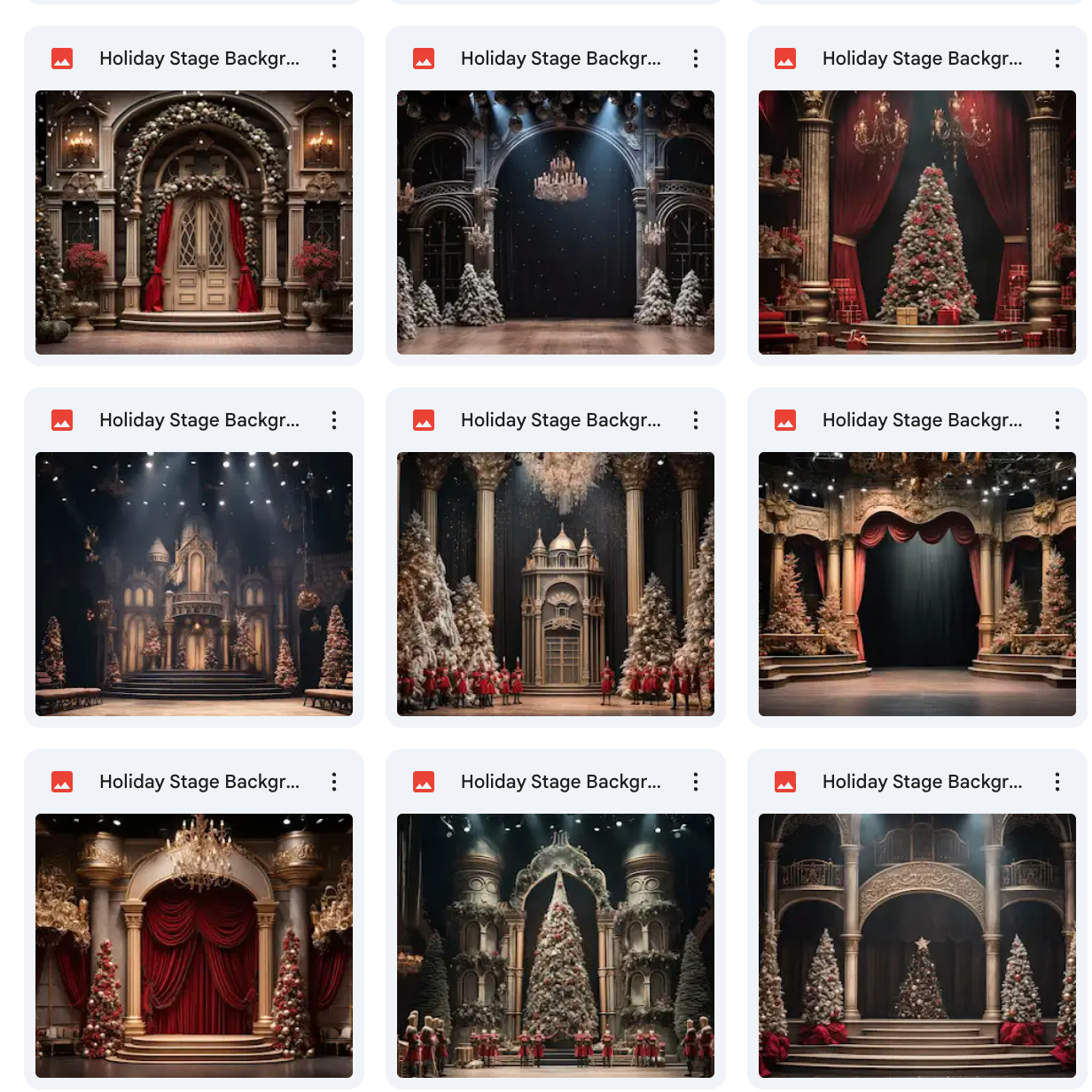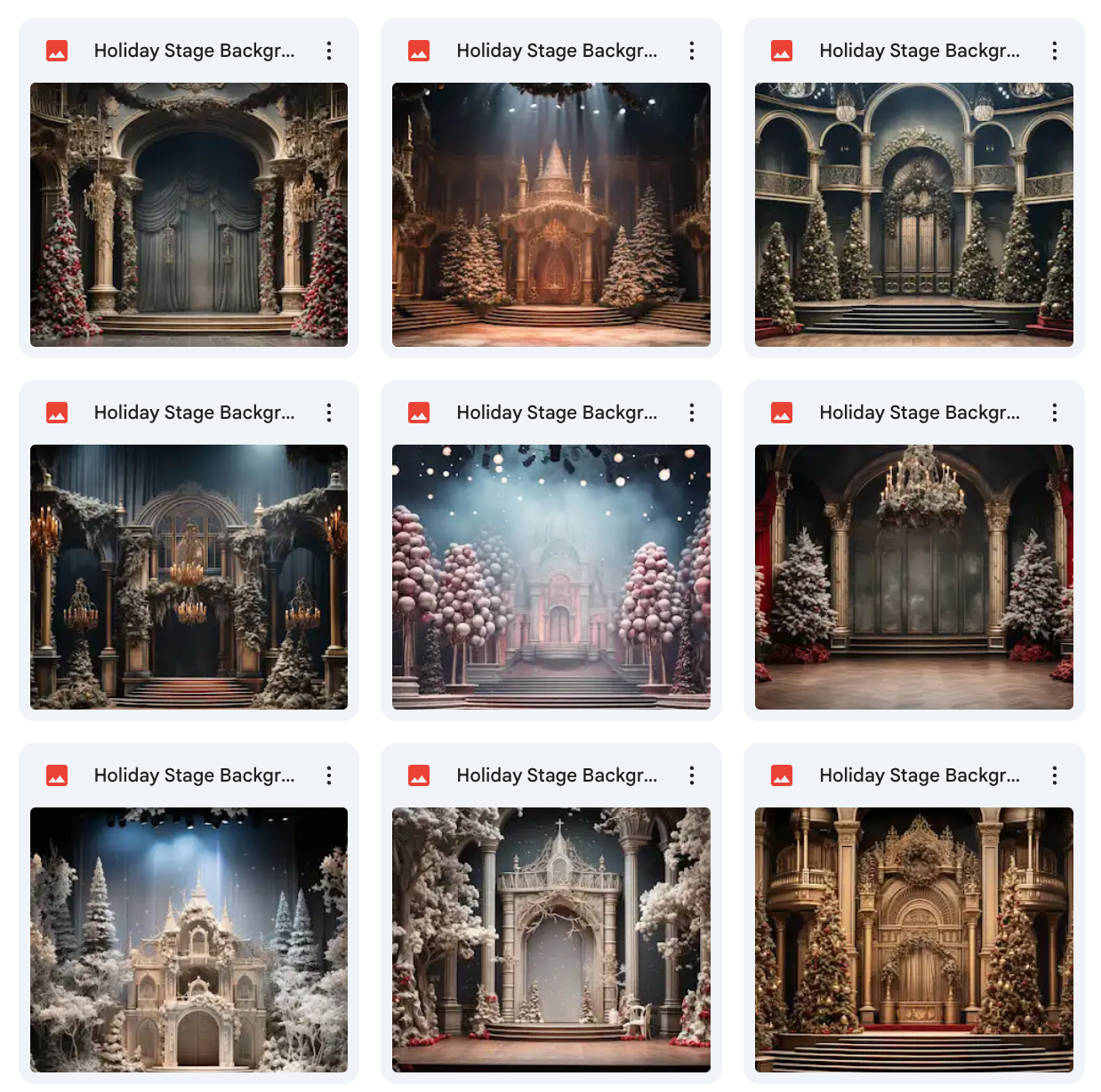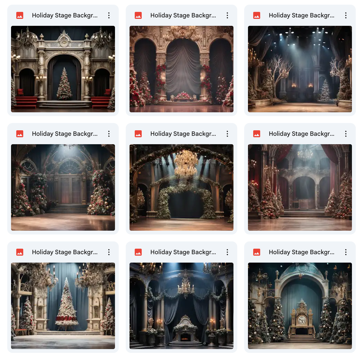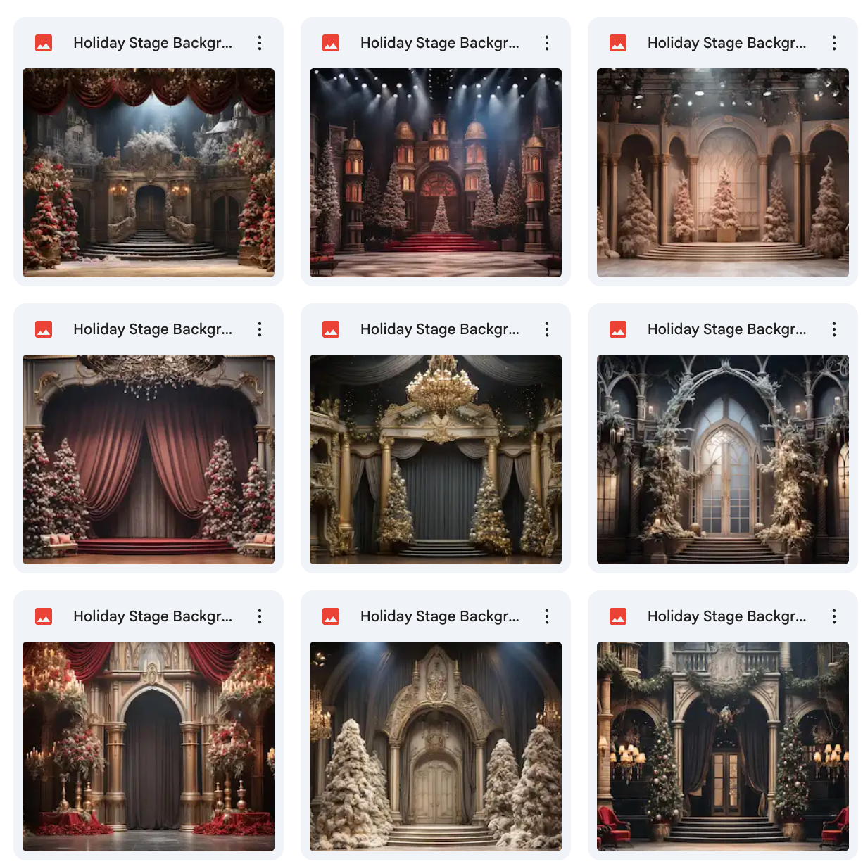 Bring your holiday performances to life with the Ultimate Holiday Stage Background Bundle, featuring 100 whimsical Christmas-themed digital backgrounds. Crafted specifically for dance and composite photographers, each background is designed to enhance your holiday visuals, creating a magical atmosphere that captivates and inspires.