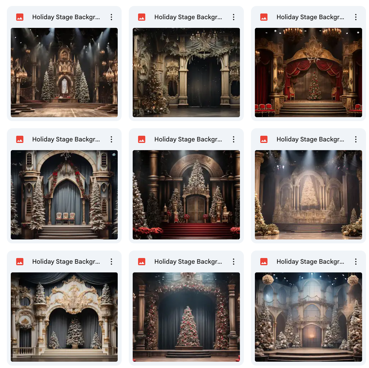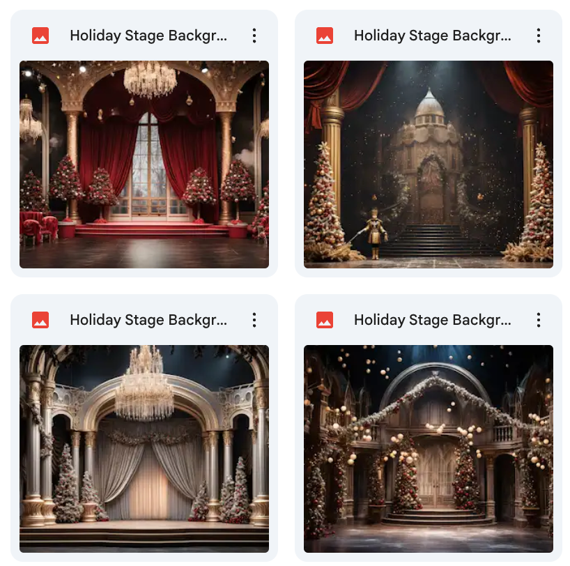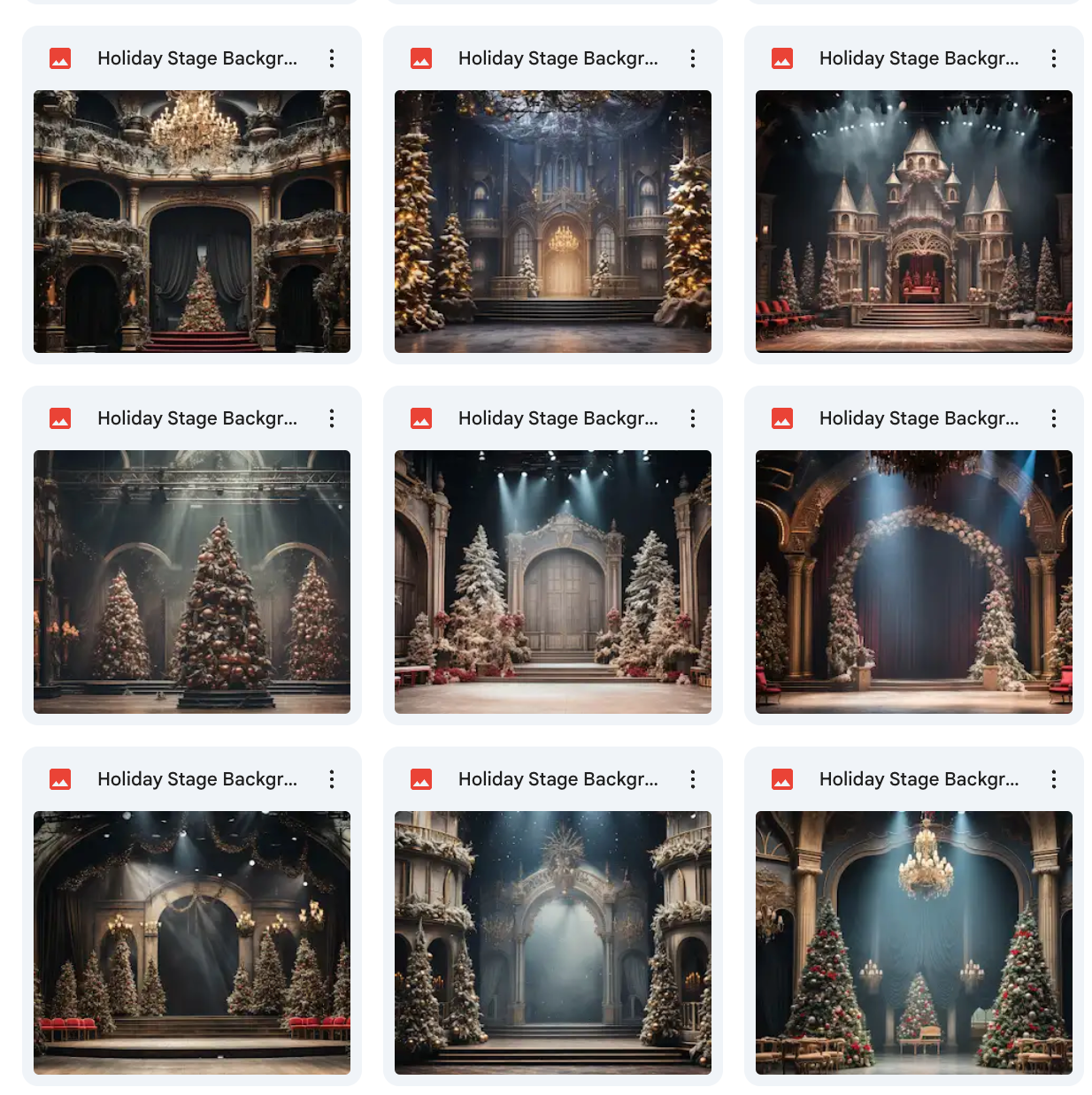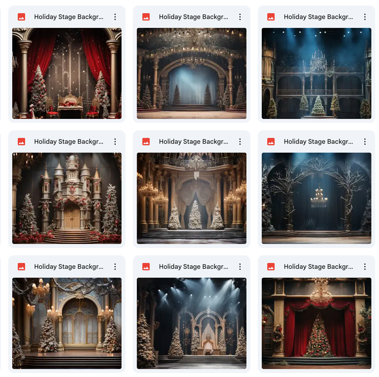 Bring your holiday performances to life with the Ultimate Holiday Stage Background Bundle, featuring 100 whimsical Christmas-themed digital backgrounds. Crafted specifically for dance and composite photographers, each background is designed to enhance your holiday visuals, creating a magical atmosphere that captivates and inspires.