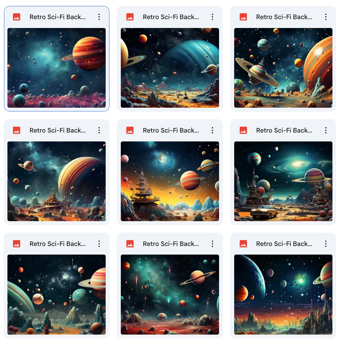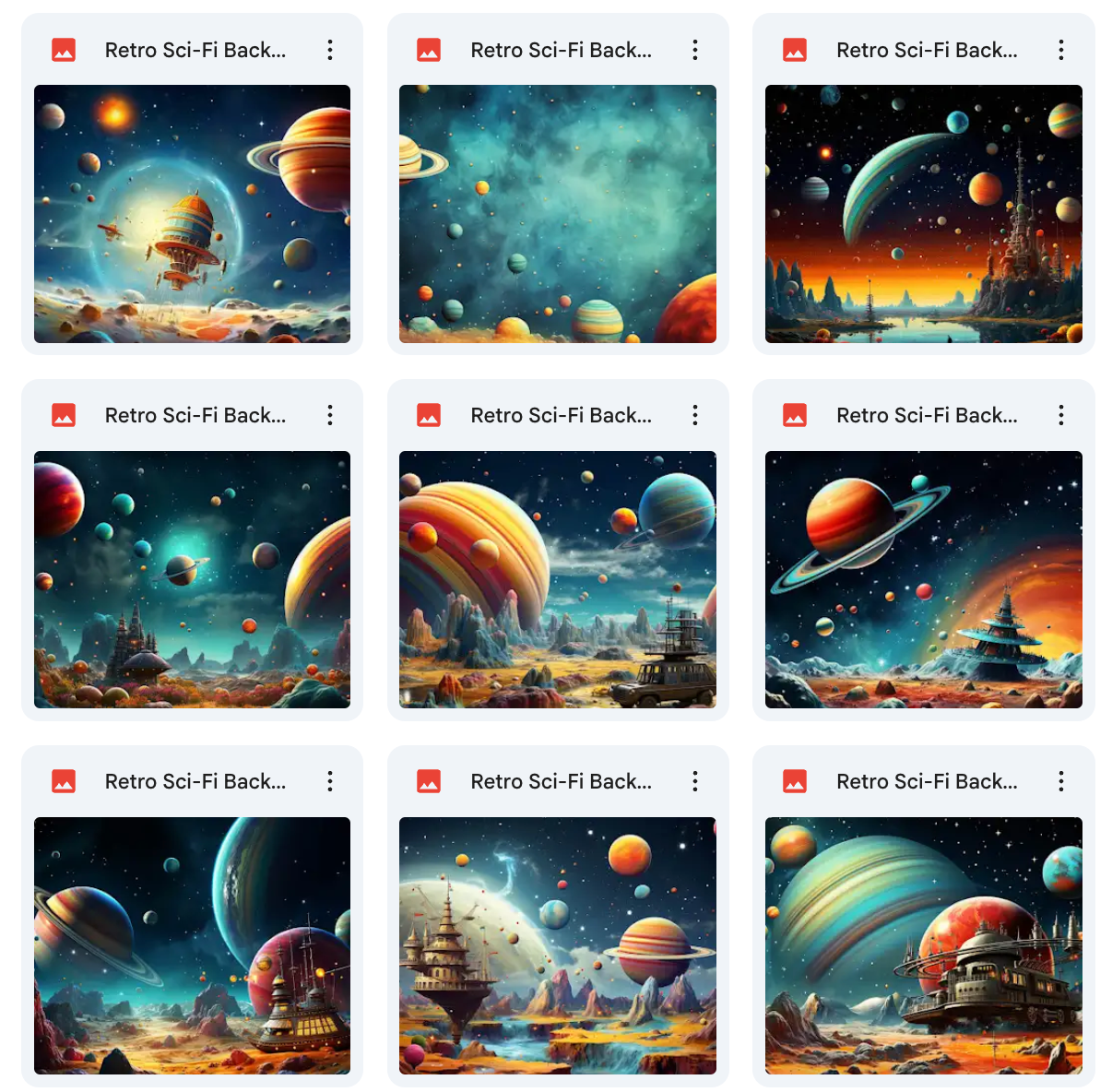 100 Unique Designs: A wide variety of backgrounds inspired by the retro science fiction era.