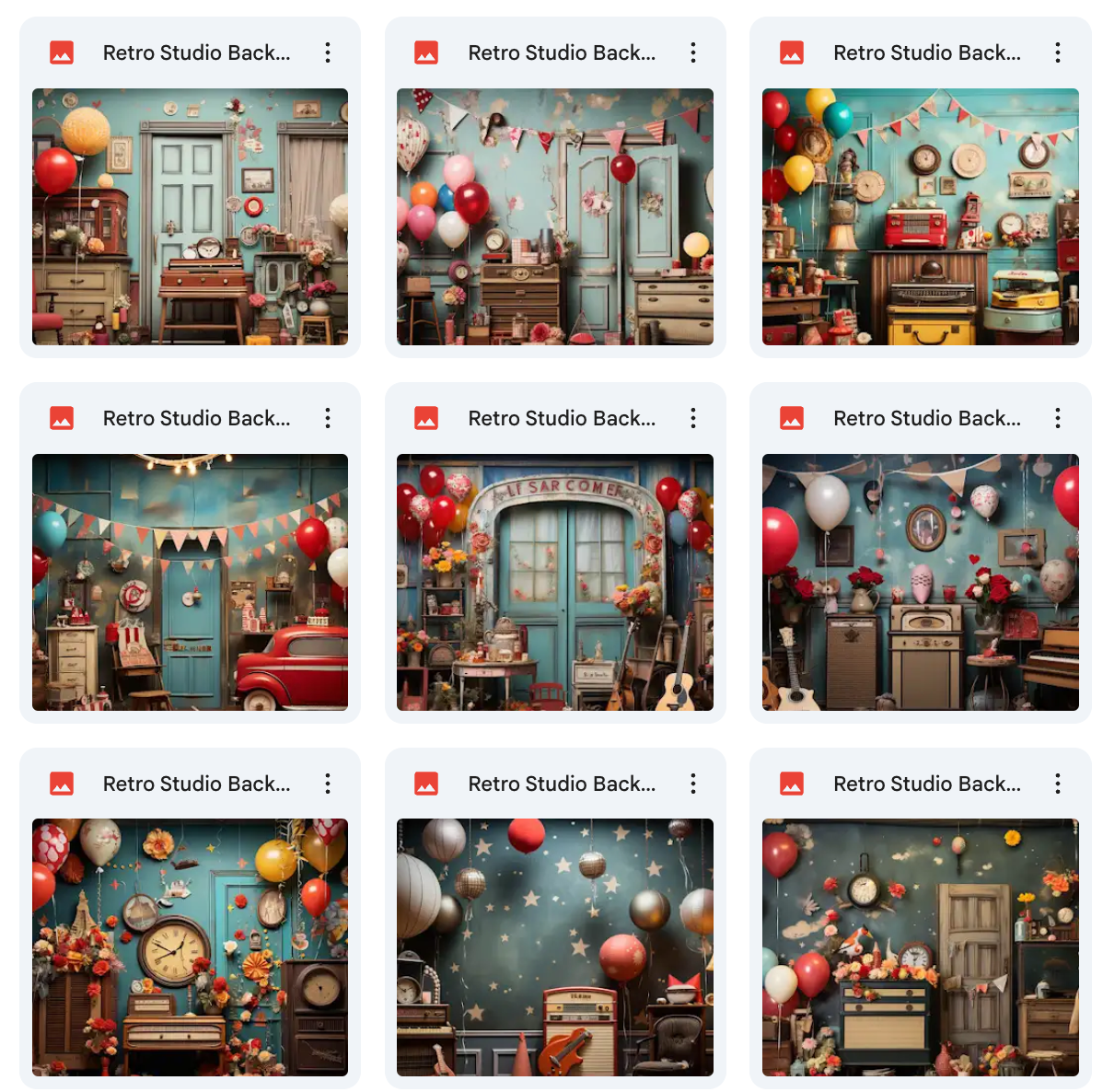 Introducing the Ultimate Retro Studio Background Bundle – your one-stop solution for transforming photos with a nostalgic touch. This exclusive collection boasts 100 high-quality, digital backgrounds, carefully curated for photographers seeking to infuse their work with a blend of classic and modern aesthetics. Elevate your photography and captivate your audience with timeless backdrops.