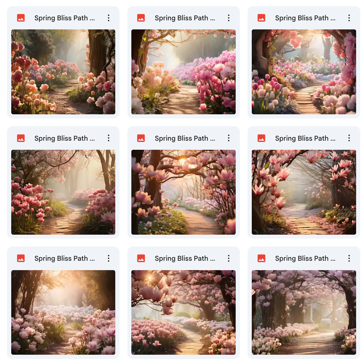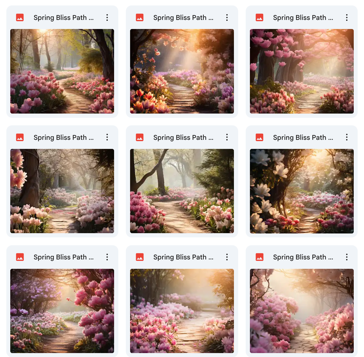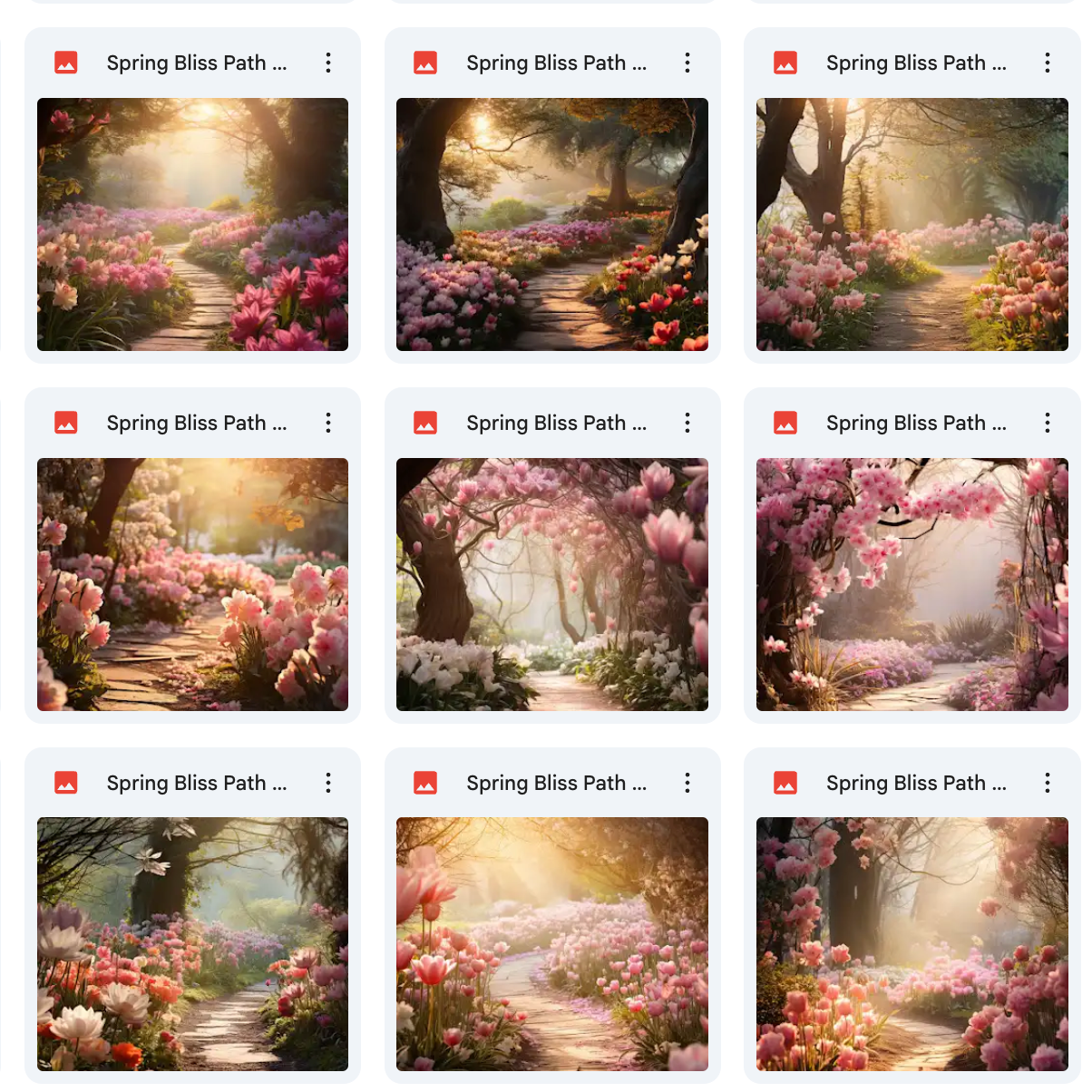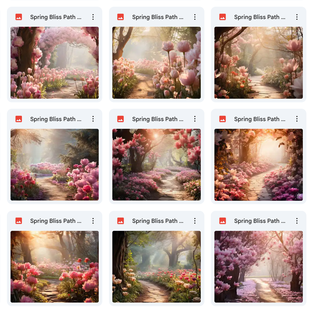 100 Unique Backgrounds: A diverse range of whimsical spring path designs, offering endless creative possibilities.Β