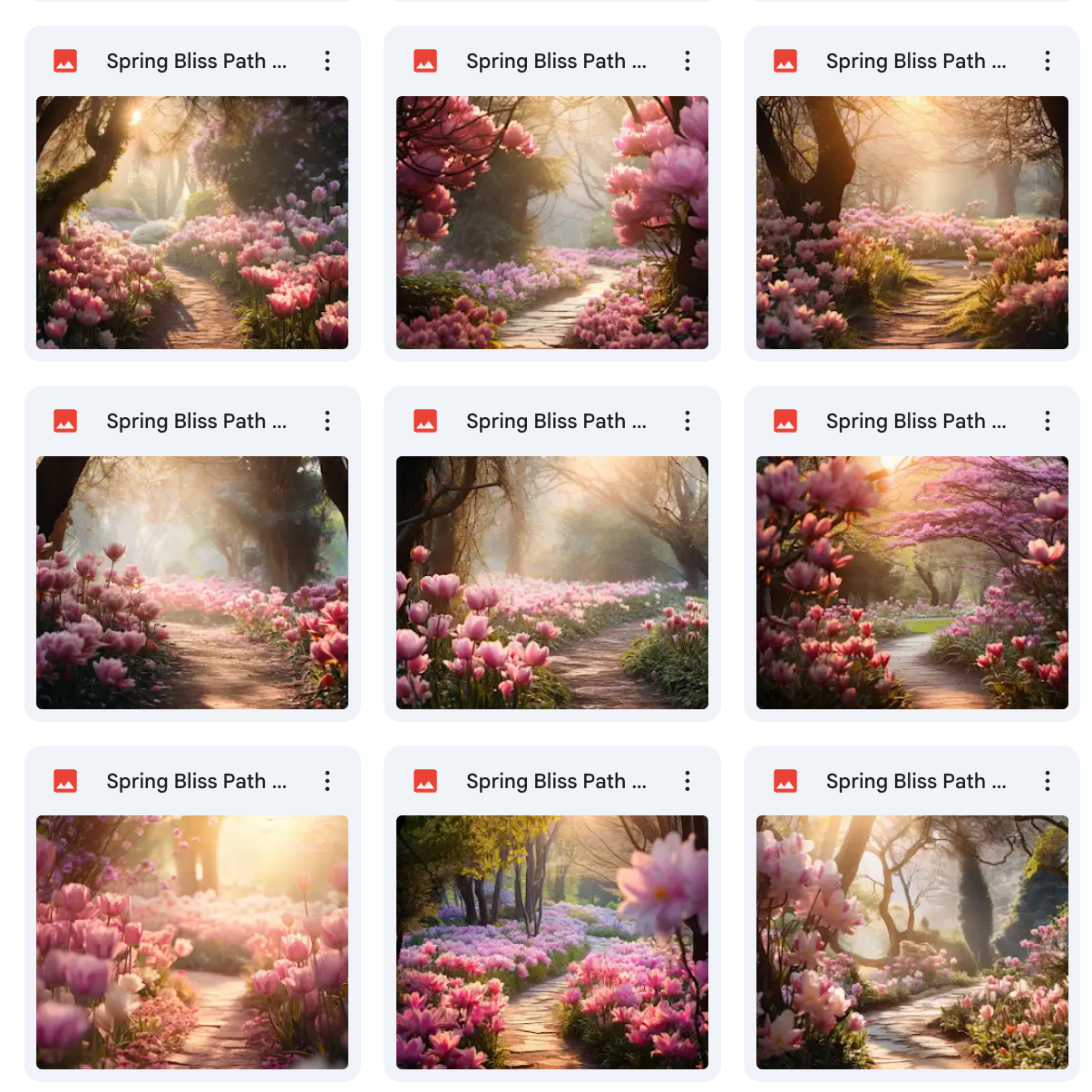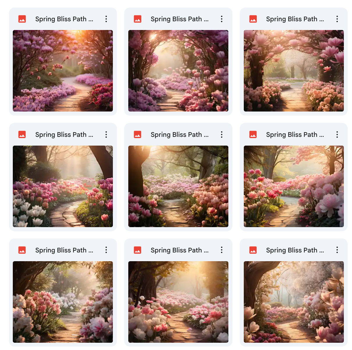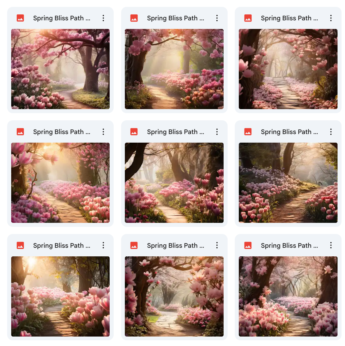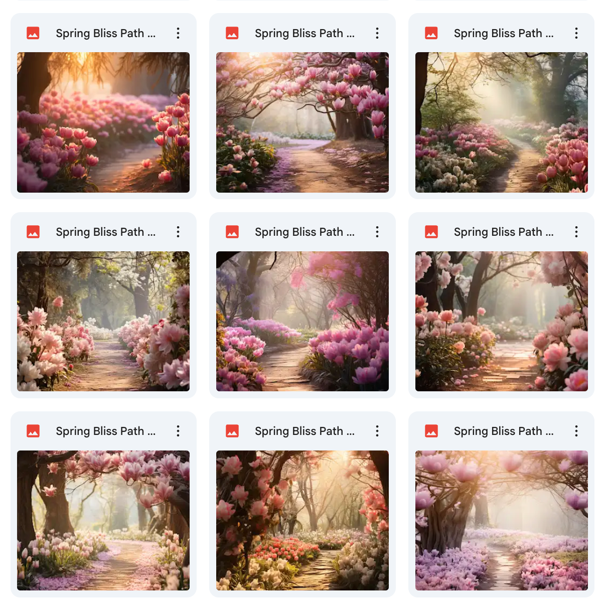 100 Unique Backgrounds: A diverse range of whimsical spring path designs, offering endless creative possibilities.Β