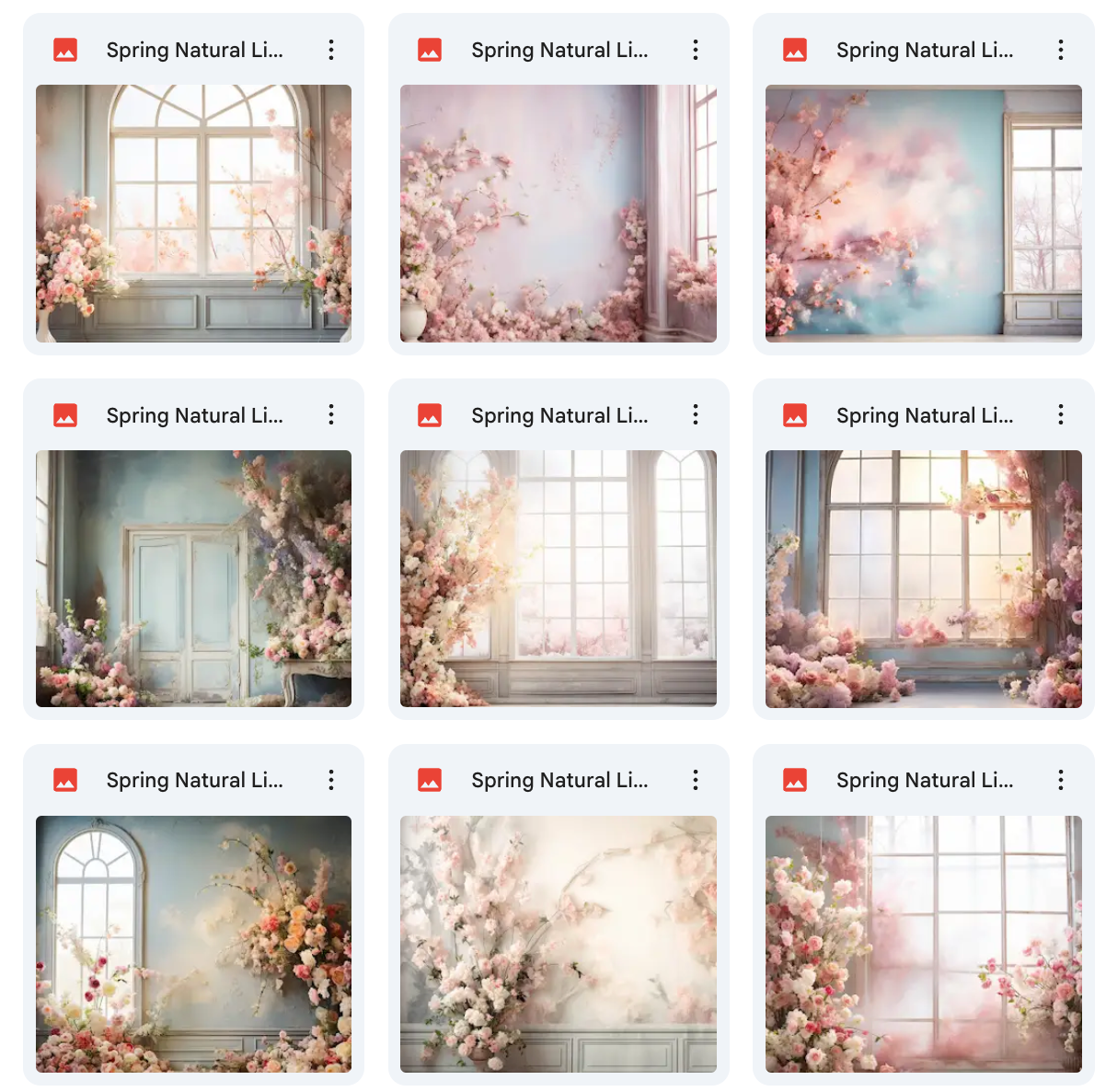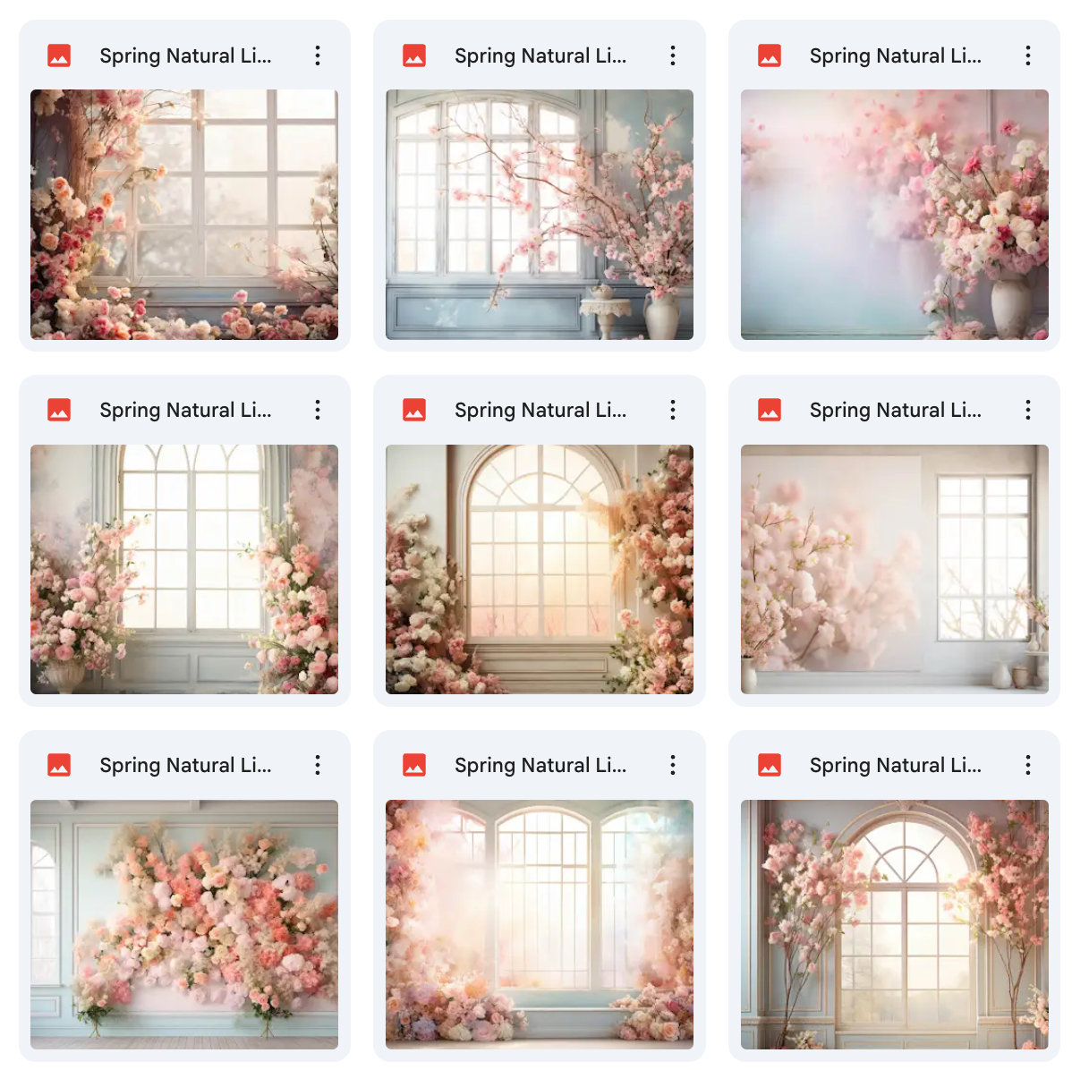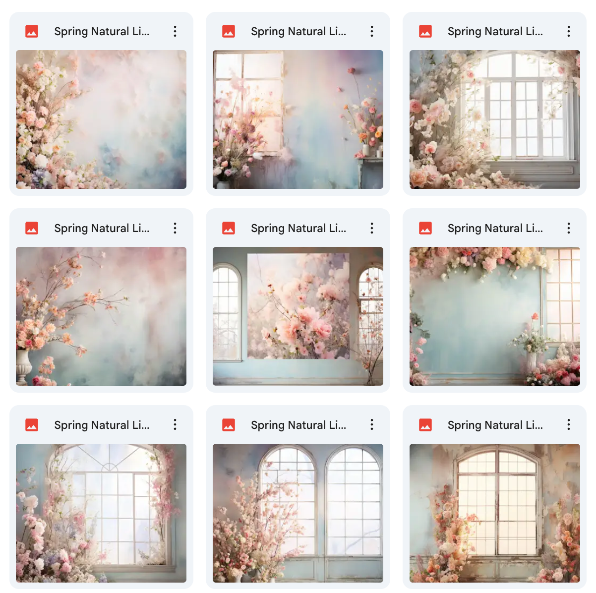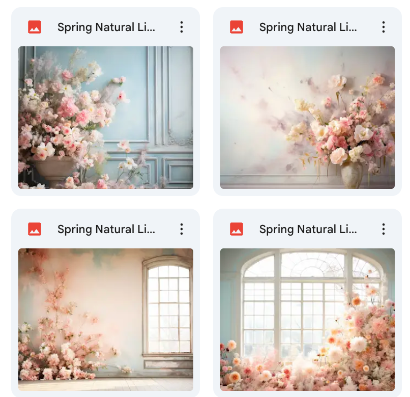 100 High-Quality Backgrounds – Includes a wide variety of spring settings with realistic natural lighting.