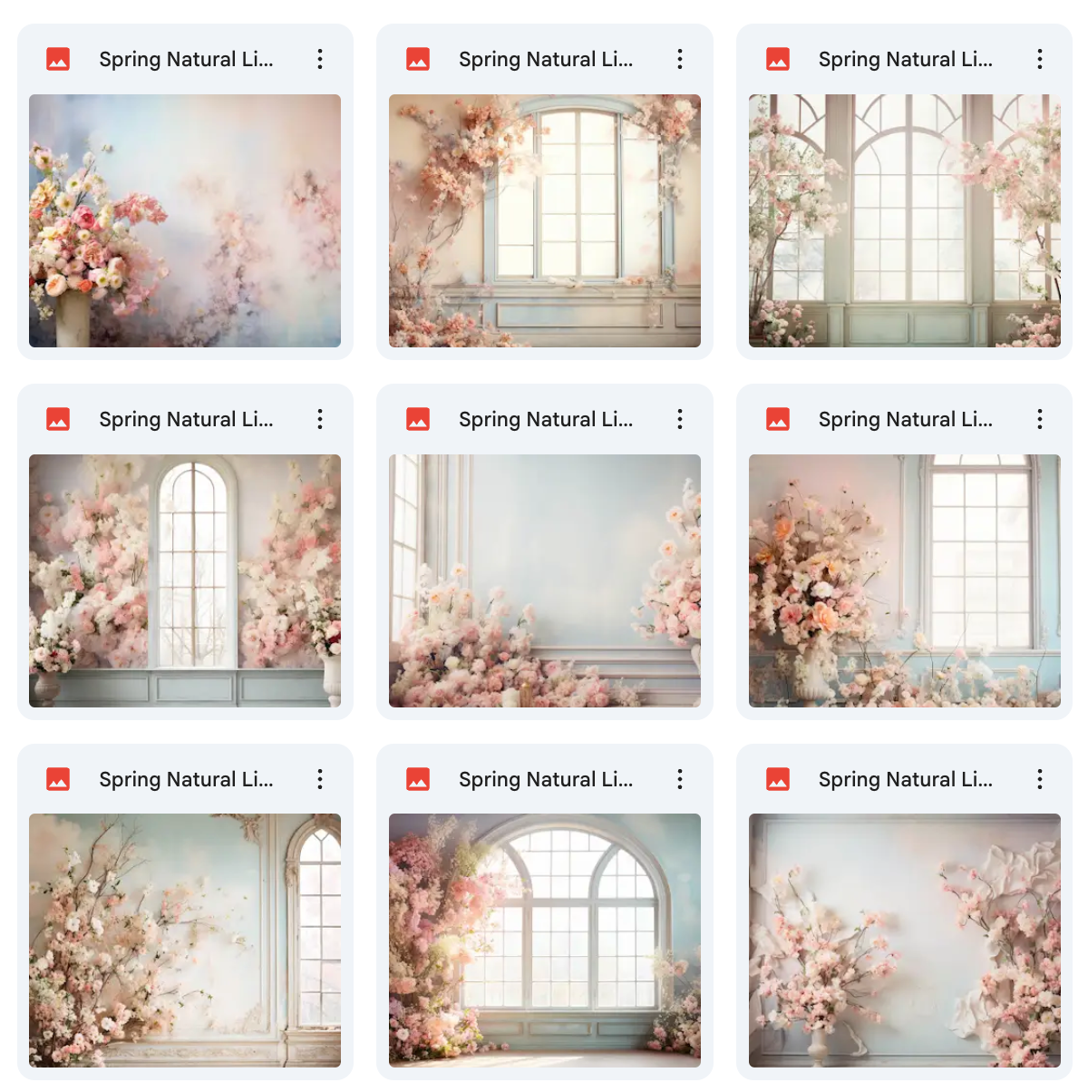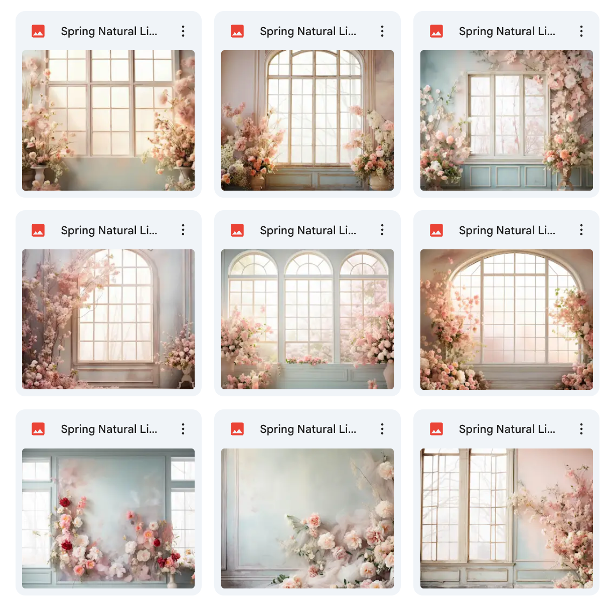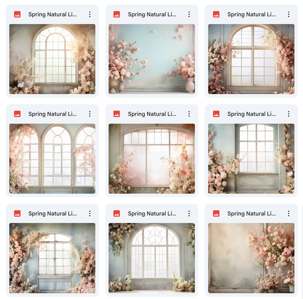 100 High-Quality Backgrounds – Includes a wide variety of spring settings with realistic natural lighting.