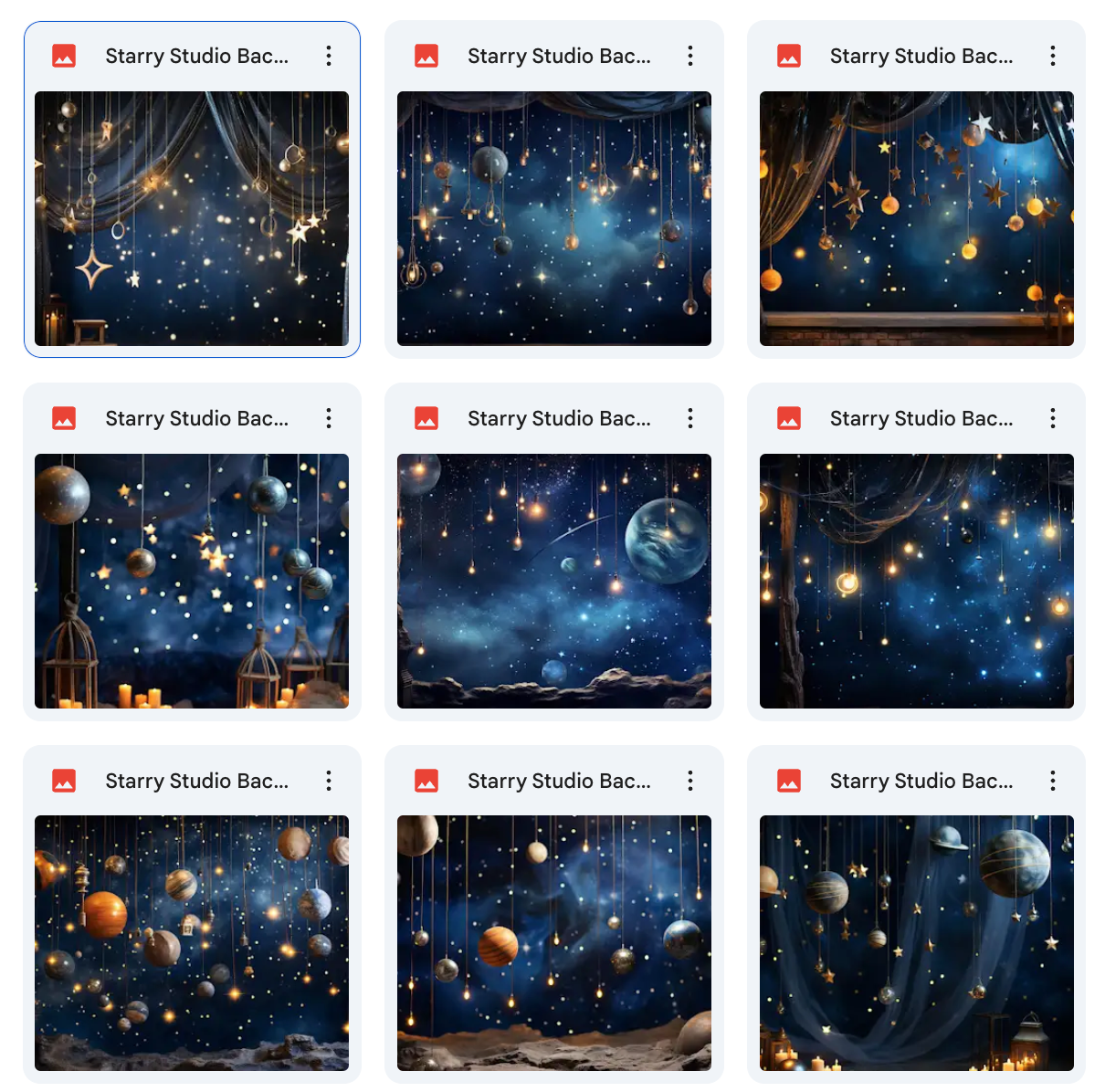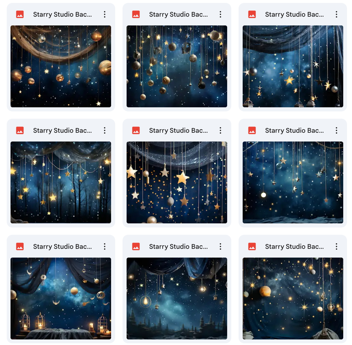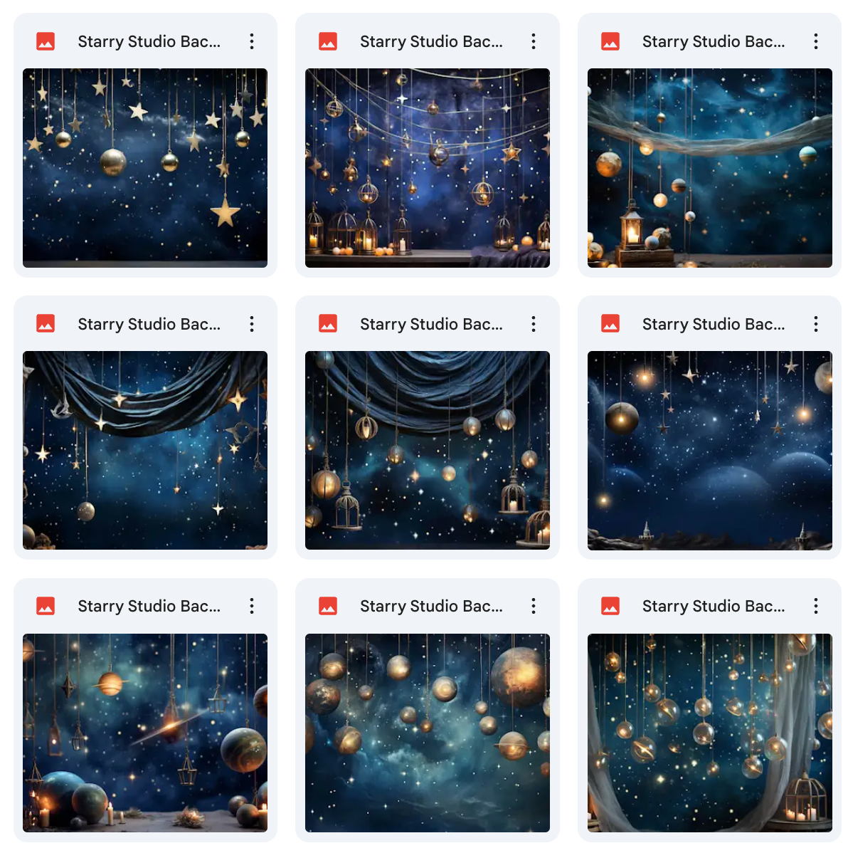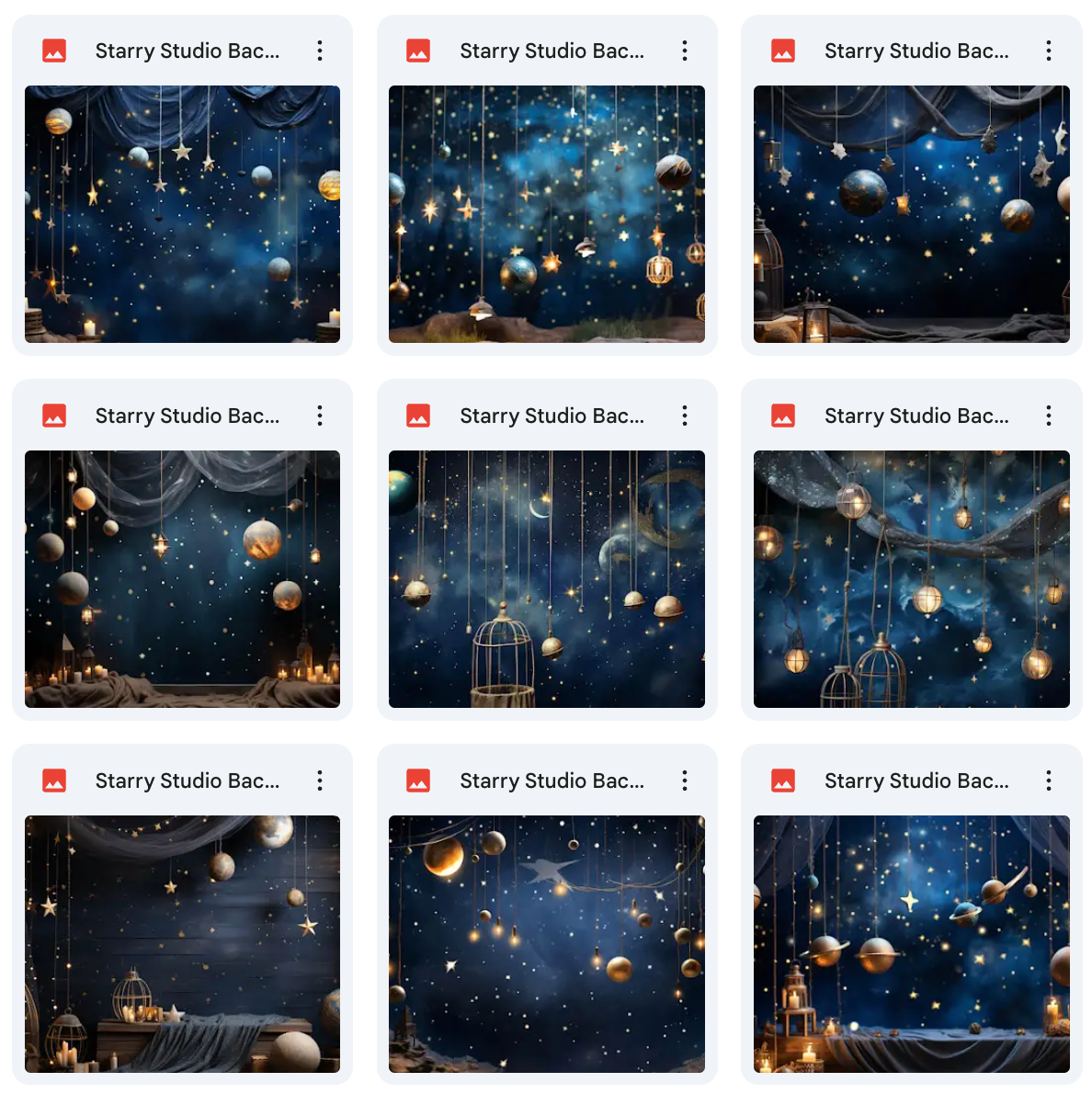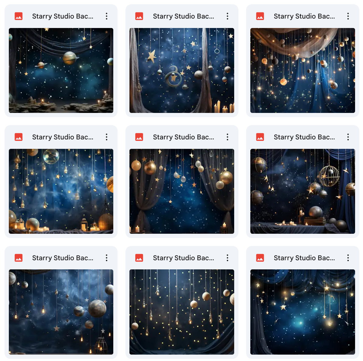 Introducing the Ultimate Starry Studio Background Bundle, the perfect collection for photographers seeking to add a celestial touch to their work. With 100 stunning star and nighttime themed digital backgrounds, this bundle offers unlimited creativity for capturing magical moments against a backdrop of cosmic beauty. Ideal for portrait, fantasy, or themed shoots.