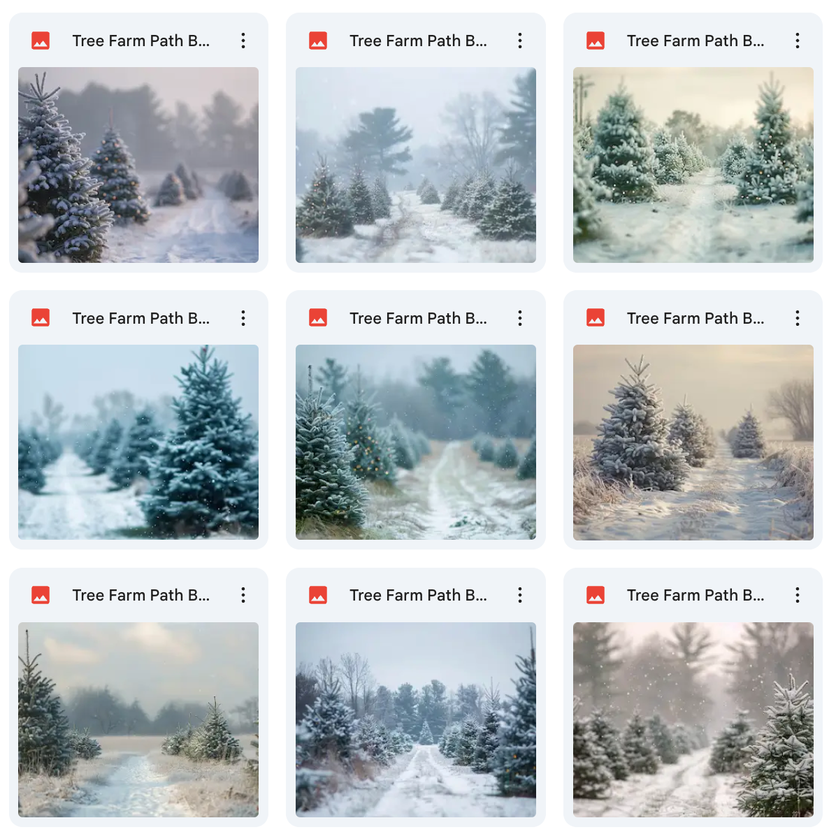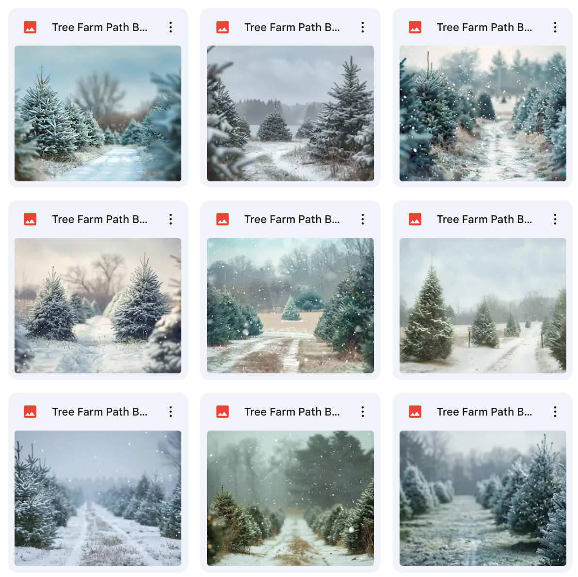 Diverse Selection: 100 unique backgrounds, offering a variety of tree farm scenes to suit your creative needs.