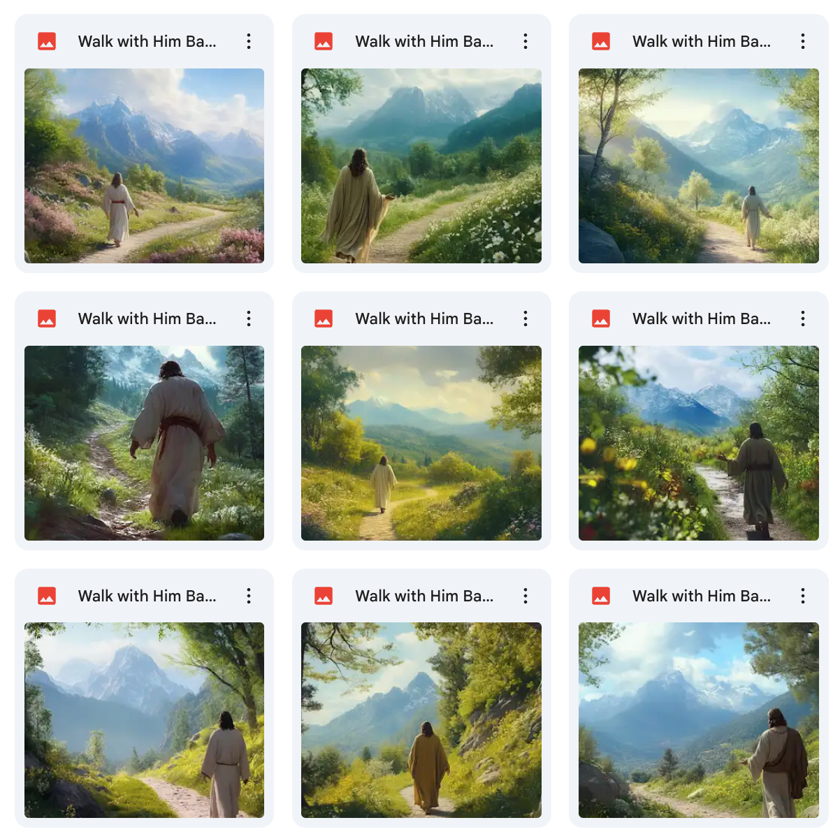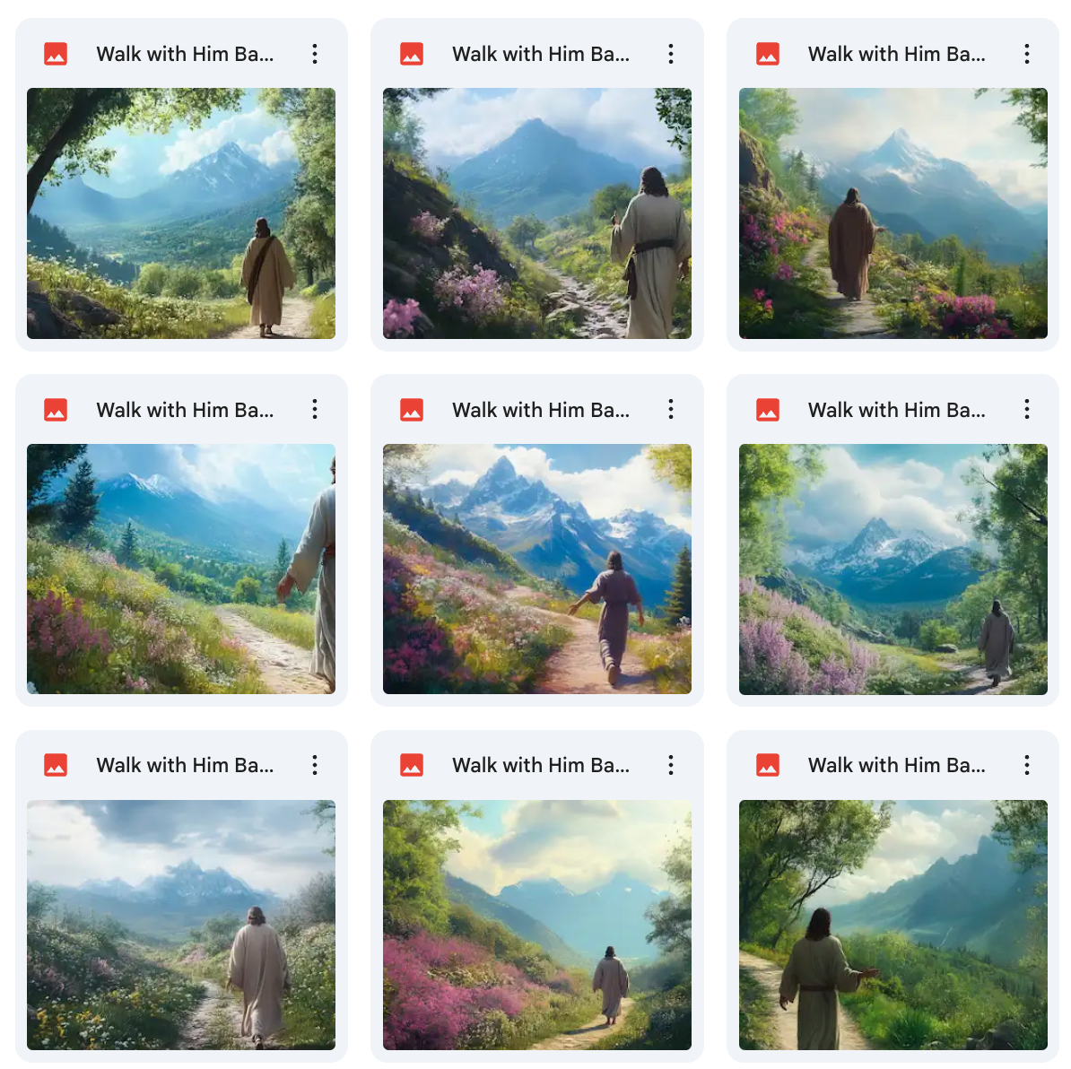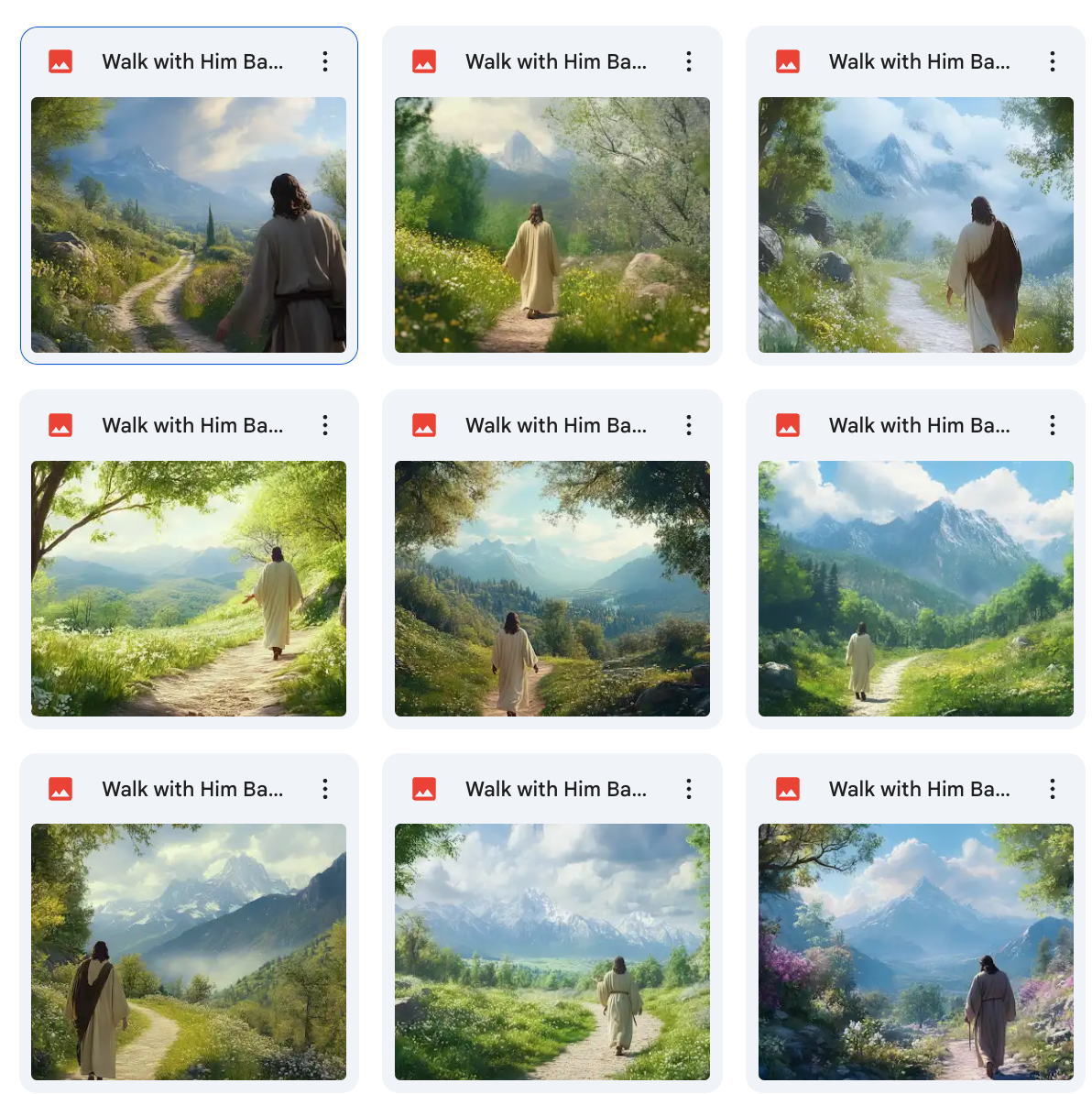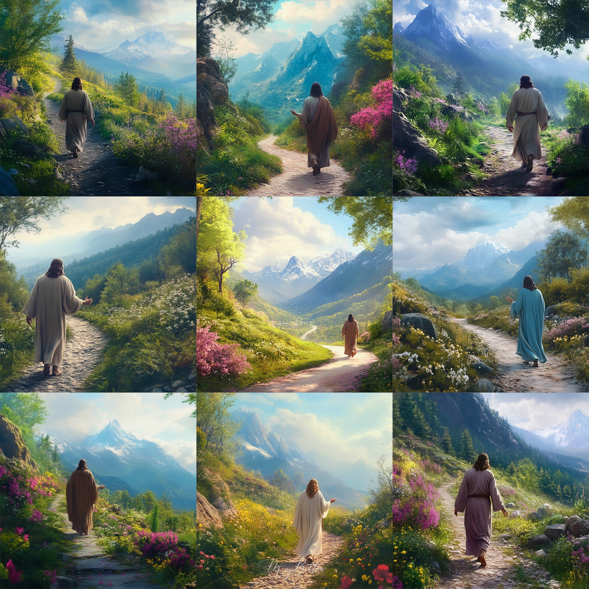 100 High-Quality Digital Backgrounds: Enjoy a vast selection of professionally designed images featuring Jesus walking in serene and inspiring scenes.